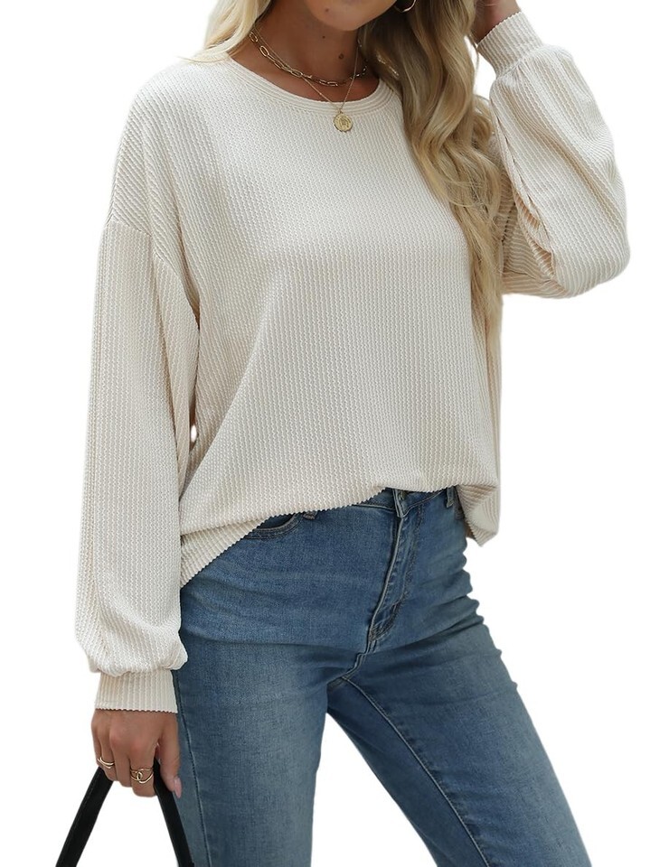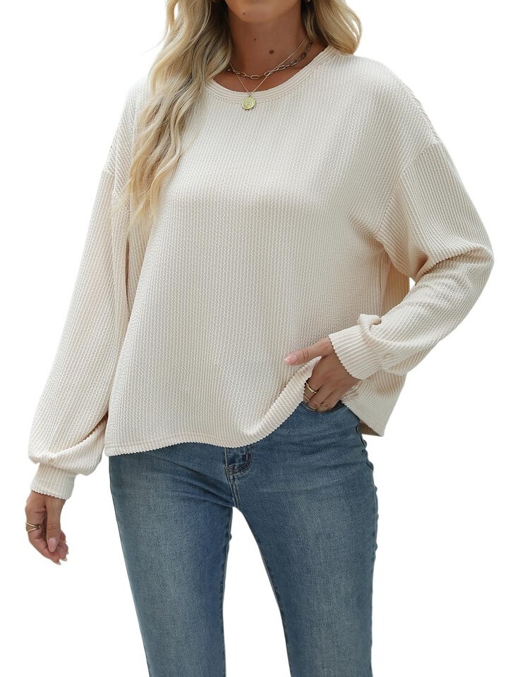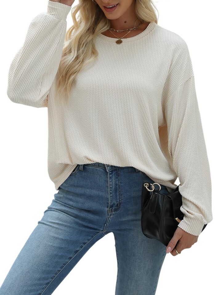- Nfsion Womens Casual Long Sleeve Crewneck Ribbed Shirt Apricot Size S