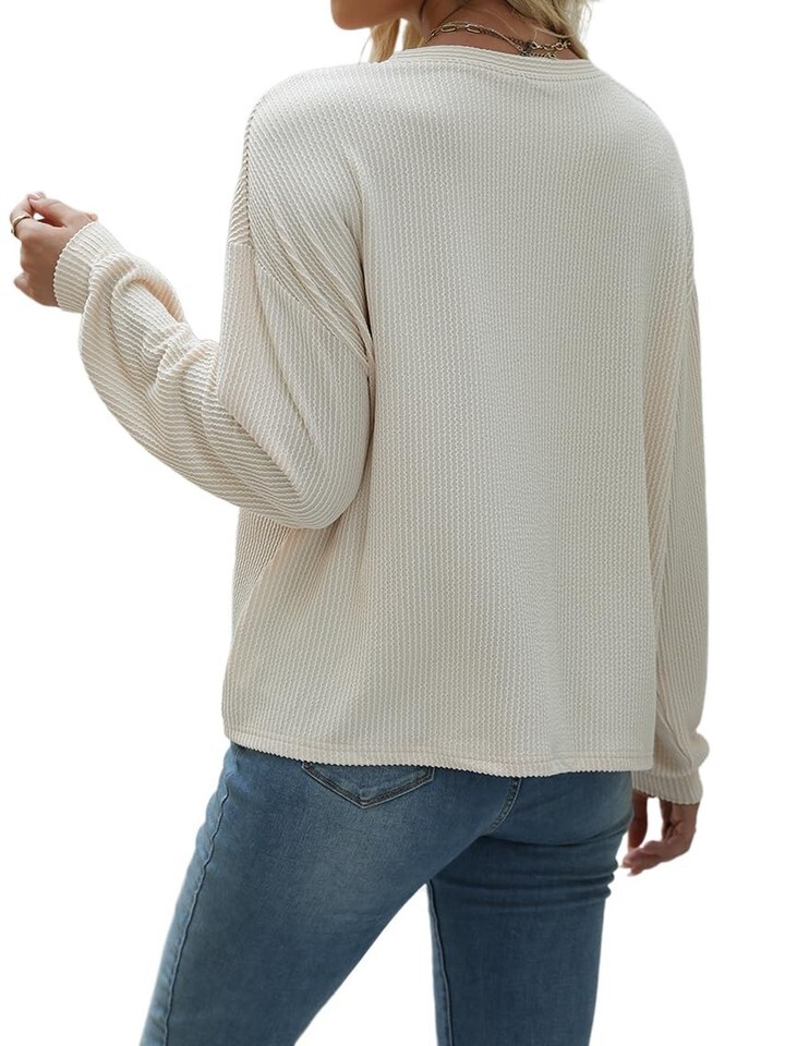 Nfsion Womens Casual Long Sleeve Crewneck Ribbed Shirt Apricot Size S