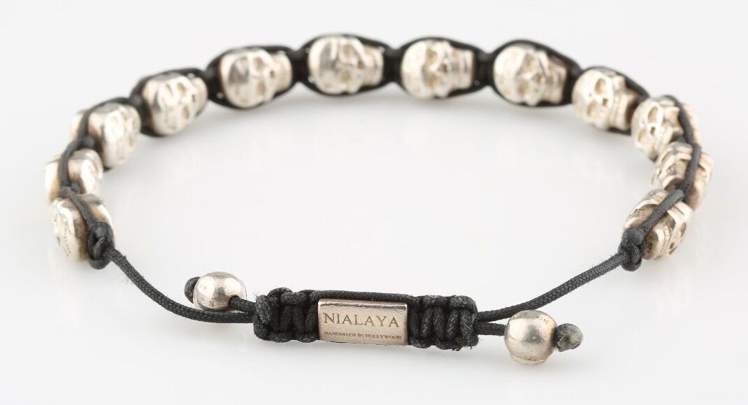 - Nialaya Uomo Skullbead Argento Sterling Braccialetto Shamballa Misura 7 Amazing