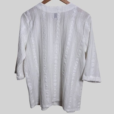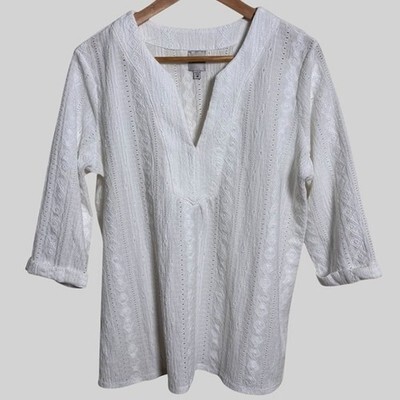 - Nic and Zoe Angled Lace Split Neck Top, White, Women's Size Medium