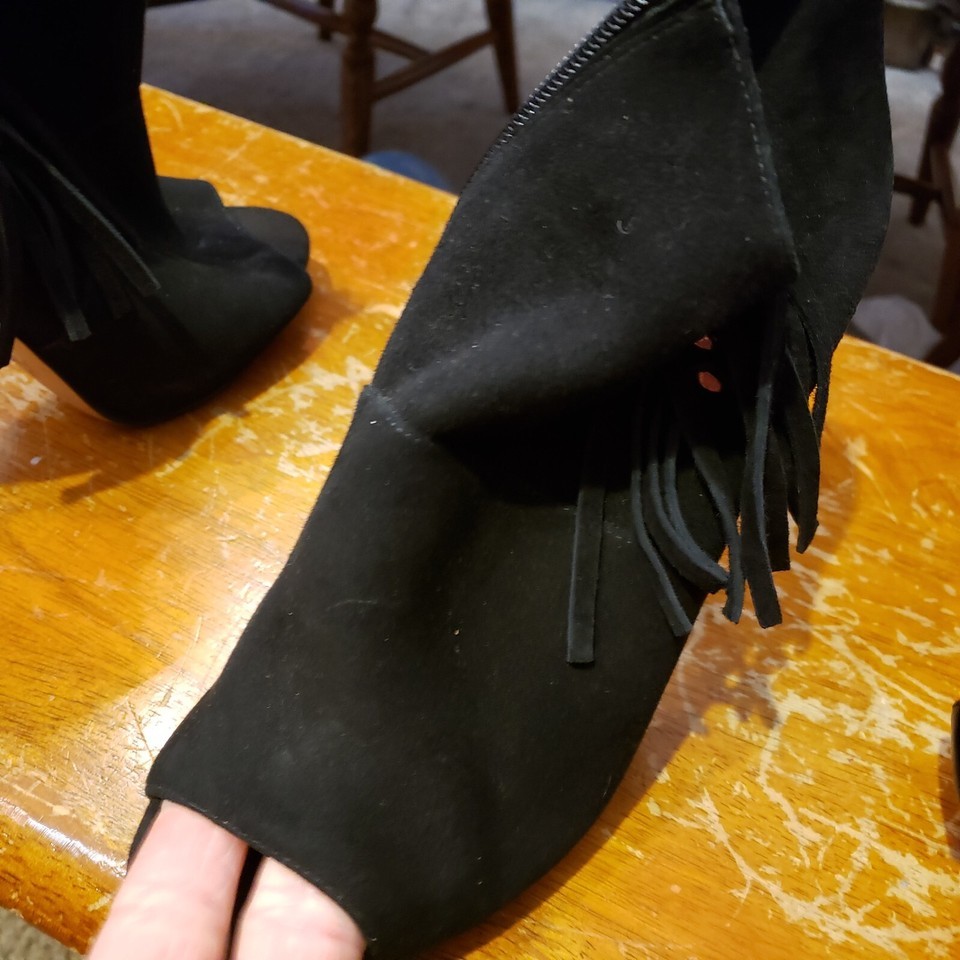 Fringe Ankle Booties Heels Shoes Black Pumps