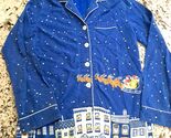 - Nick & Nora Christmas Blue Flannel Santa Sled Cityscape Pajama top shirt MEDIUM