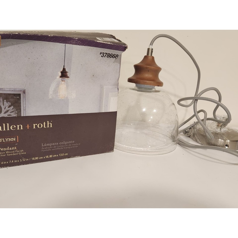 - Nickel/wood Flynn 1-Light Transitional Seeded Glass Dome Hanging Pendant Light