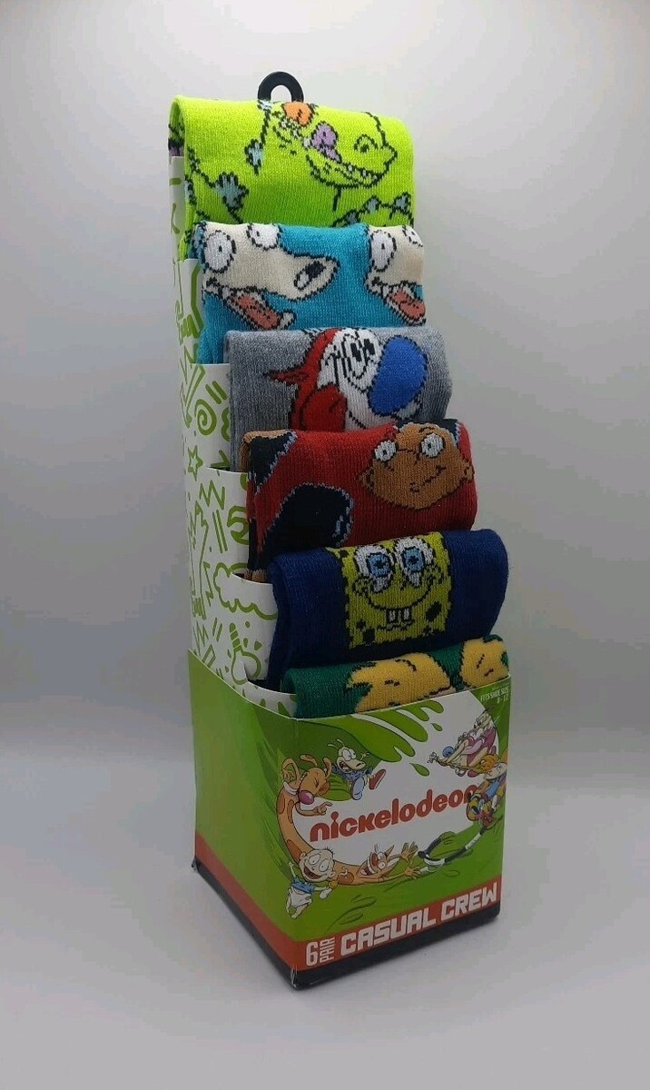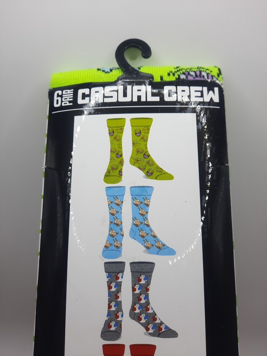 - Nickelodeon Men's Print Novelty Socks 6 Pair Casual Crew Colorful Size 6-12 NEW