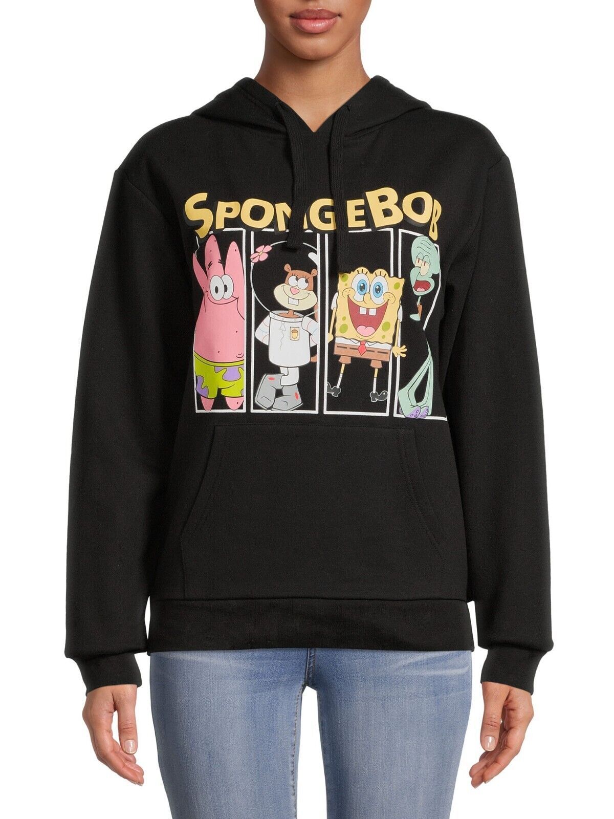 This colorful hooded sweatshirt features Spongebob. It is lightweight and super comfortable. Made of Cotton/Polyester. Graphic print design on the front of Spongebob. Match this bright sweatshirt with a pair of jeans and you are surely to be the most stylish gal on the block.