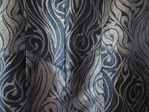 The skirt is a viscose silk and lurex blend.