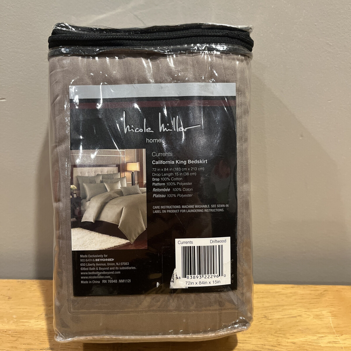 The product is a California King bedskirt from Nicole Miller in a driftwood brown color, designed for the bedroom. The Currents pattern adds a touch of elegance to the bed, complementing the overall decor of the room. Made specifically for a California King bed, this bedskirt is tailored to fit perfectly and add a finishing touch to the bedding ensemble. The neutral brown color ensures versatility in matching various bedding sets and room themes.