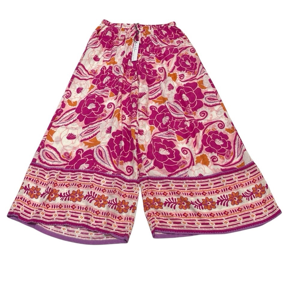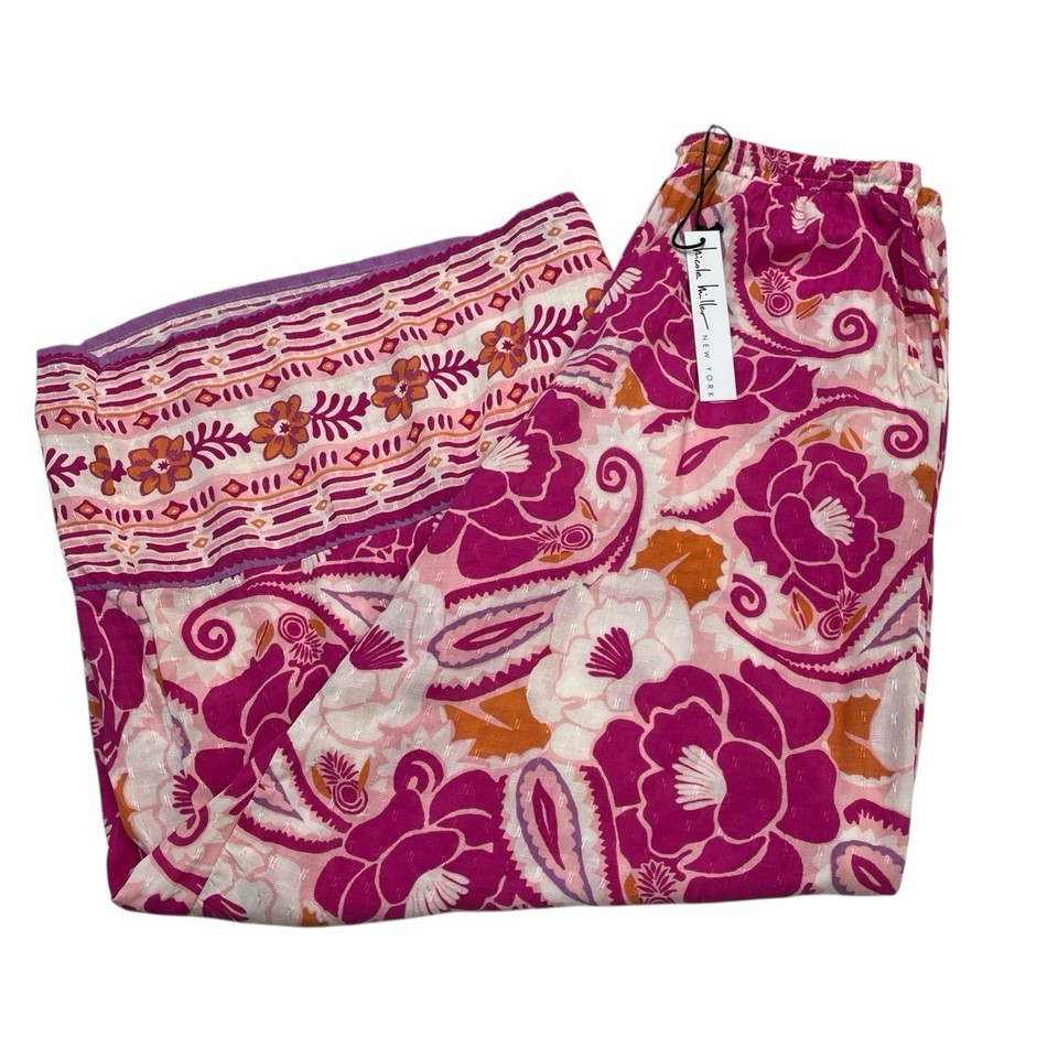 Nicole Miller Palazzo Pants Womens M Pink Floral Wide Leg Tropical Beachy Resort