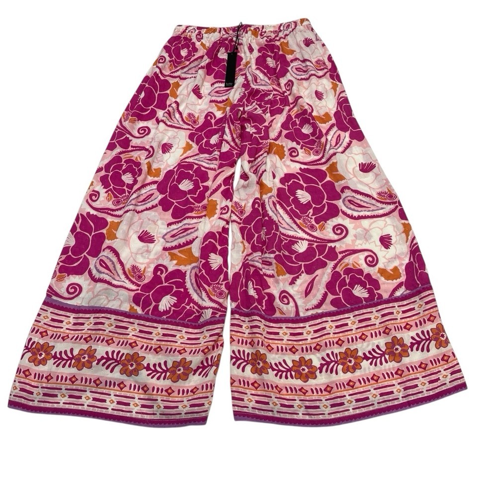 - Nicole Miller Palazzo Pants Womens M Pink Floral Wide Leg Tropical Beachy Resort