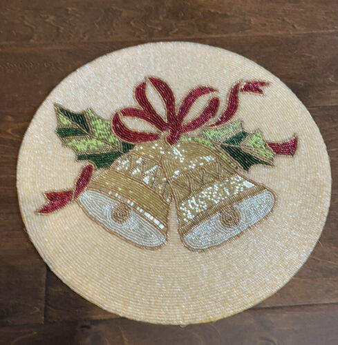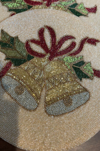 Nicole Miller home Red Gold Mistletoe Christmas beaded charger placemat.