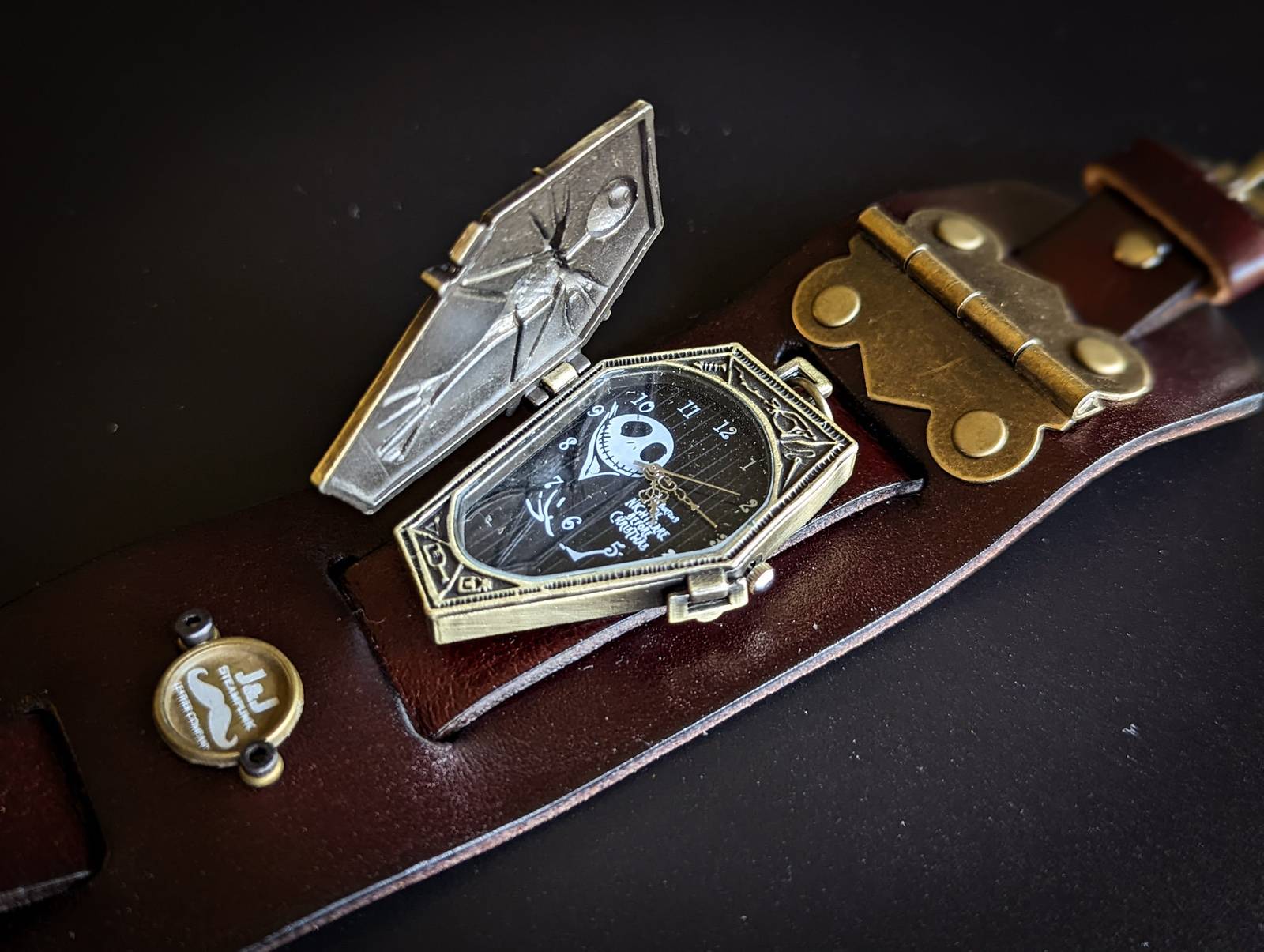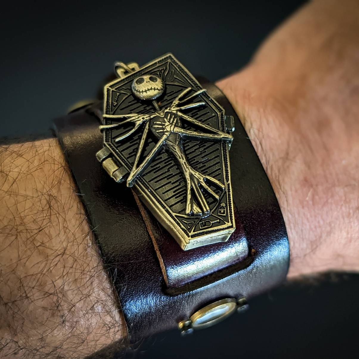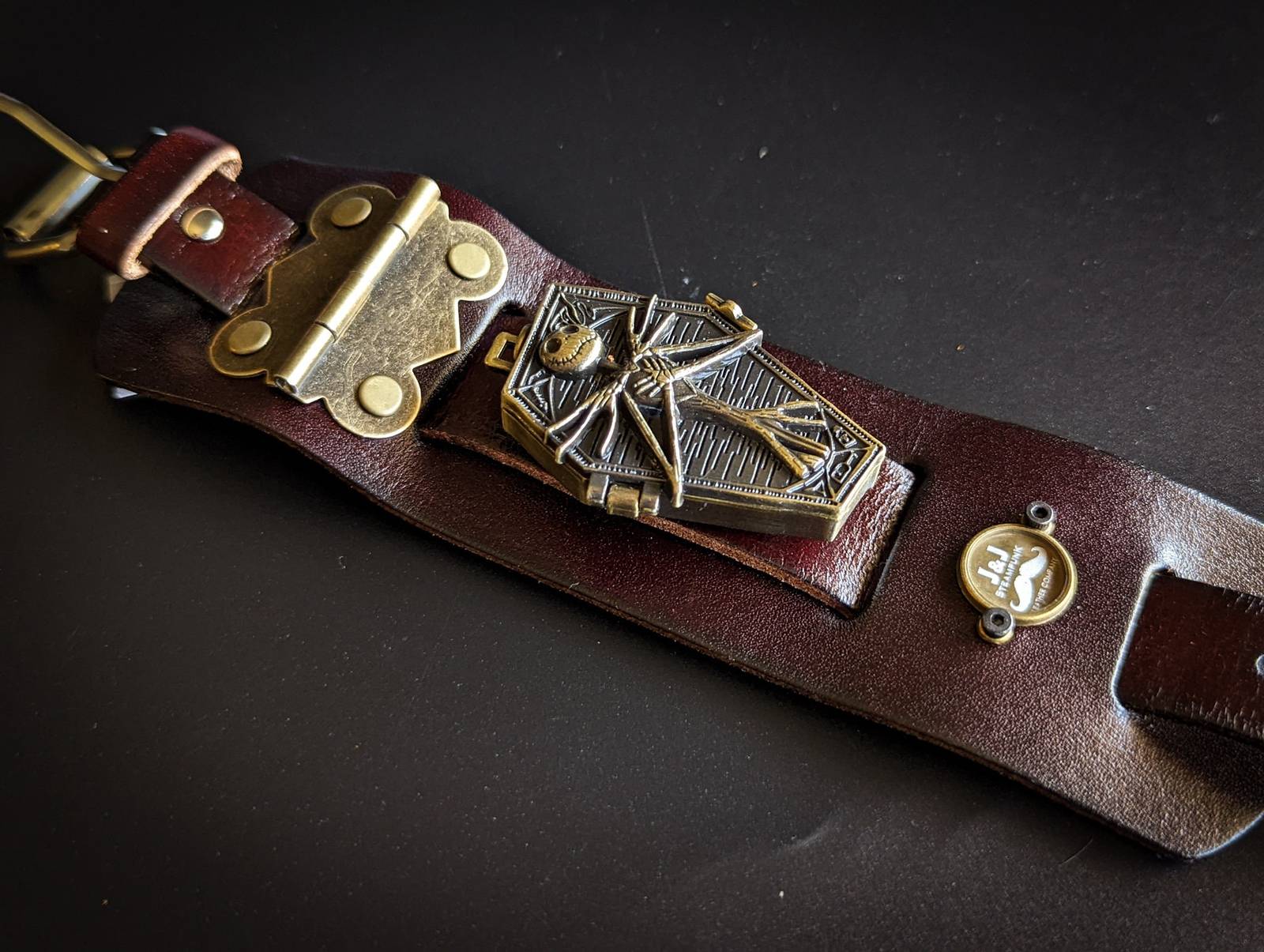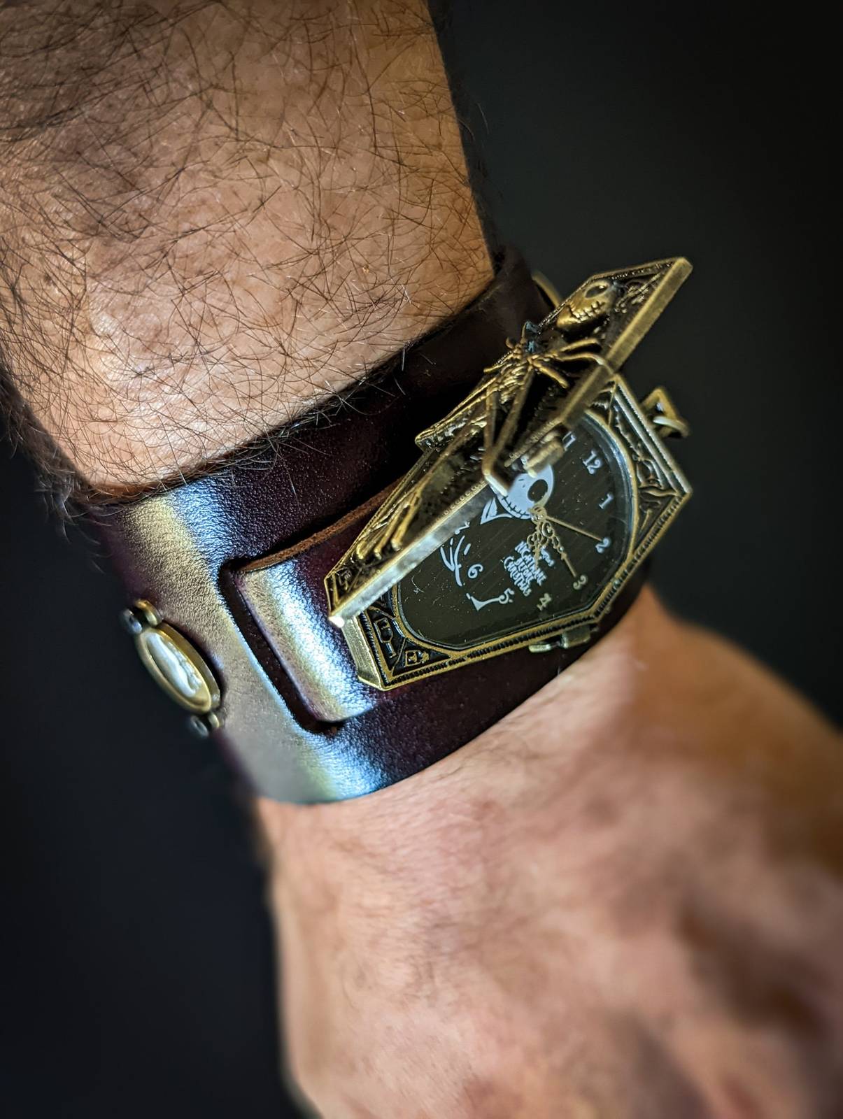 Jack Skellington Watch, Nightmare Before Christmas, Halloween Steampunk Bracelet, Gothic Cuff, Genuine Leather, Hand Made