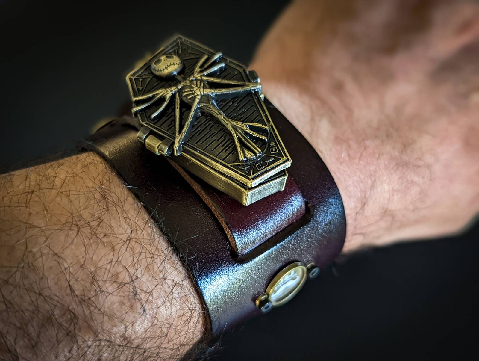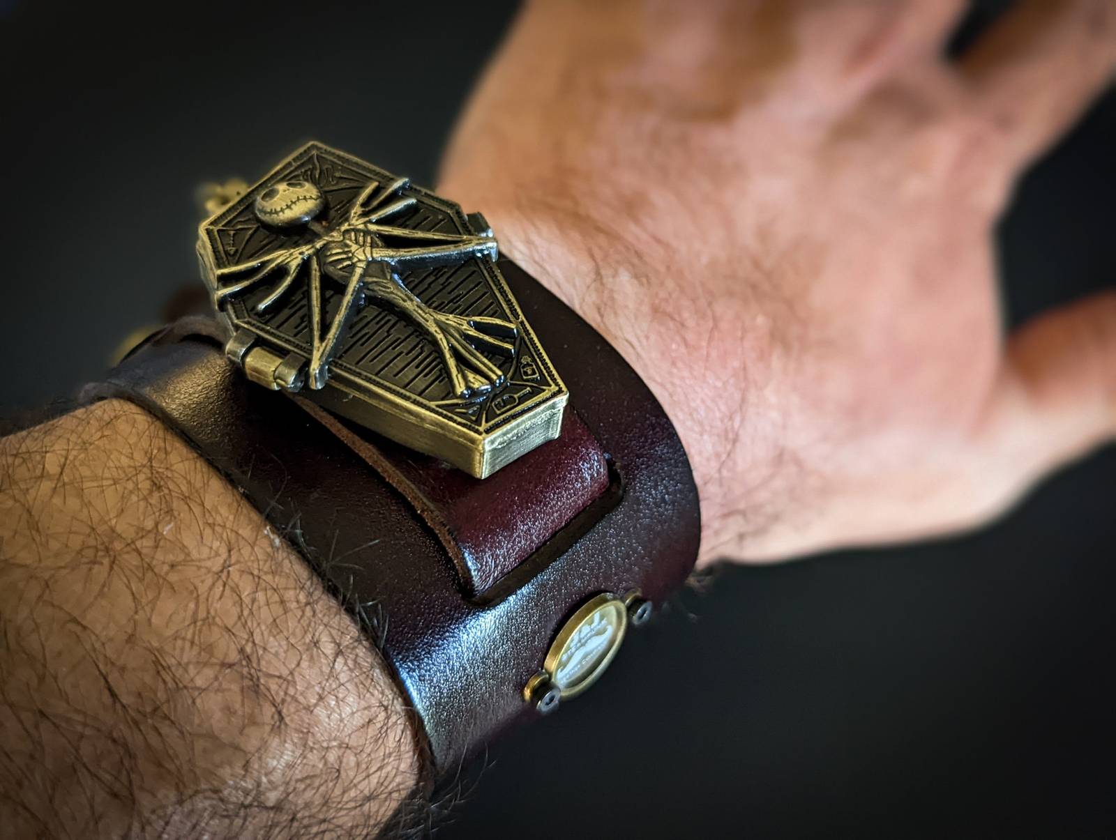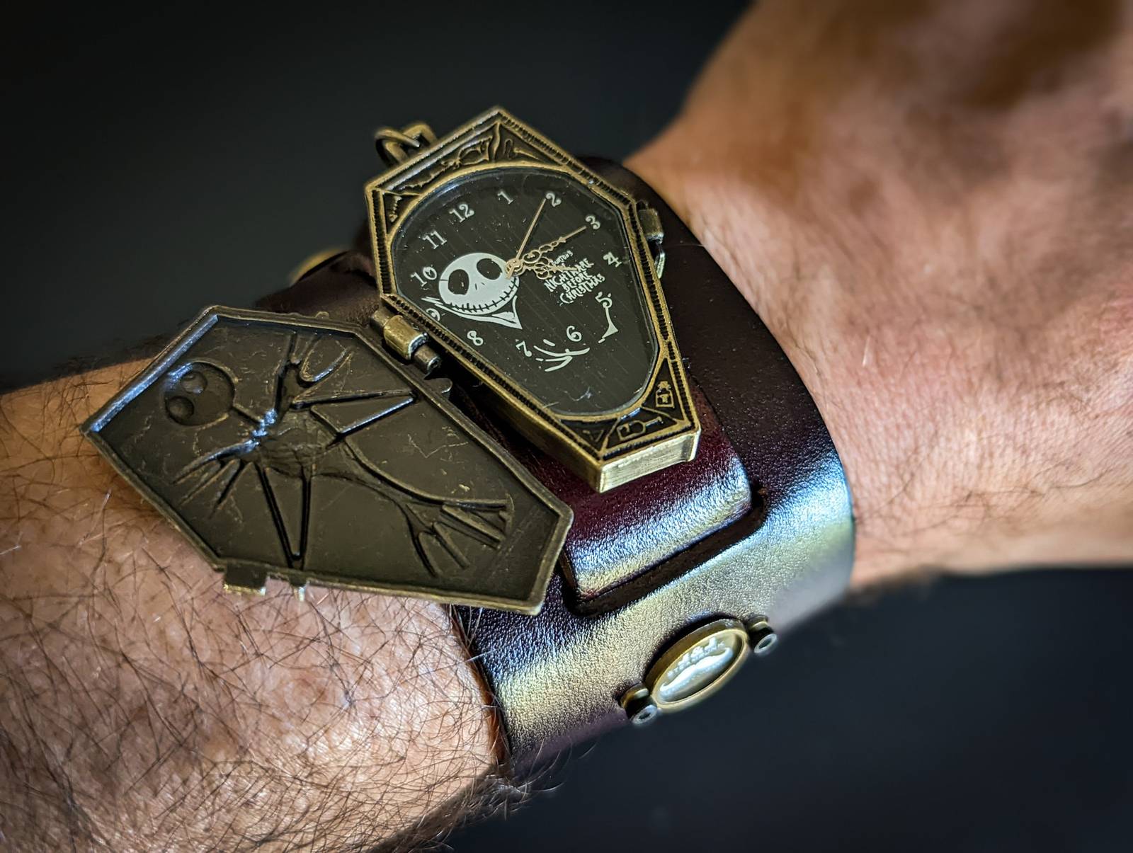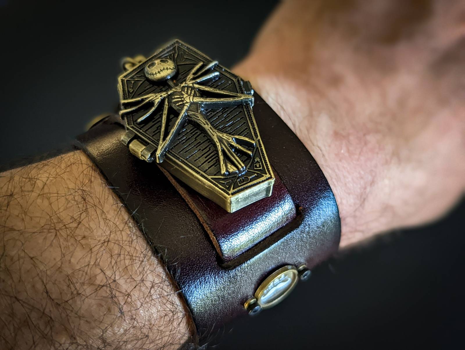 Jack Skellington Watch, Nightmare Before Christmas, Halloween Steampunk Bracelet, Gothic Cuff, Genuine Leather, Hand Made