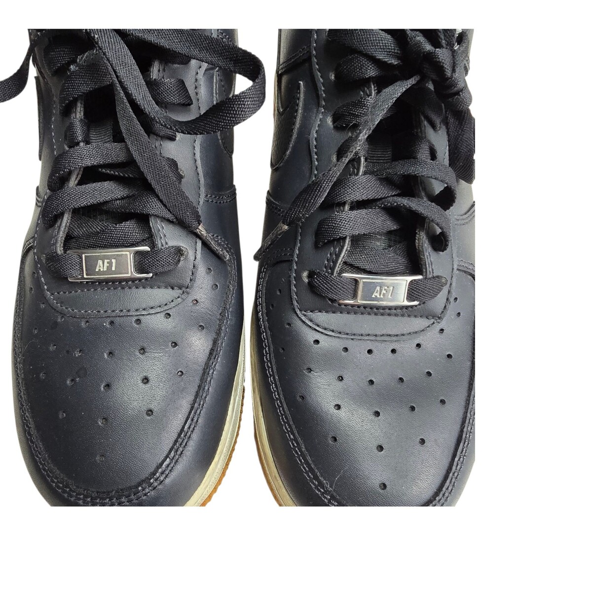 Nike Air Force 1 ?07 WMNS 8.5 Off Noir Black Premium Sneakers (2019). Classic AF1 silhouette with premium leather, metallic accents, and gum sole. Authentic Nike, style code 896185?008. Perfect for streetwear, casual outfits, or sneaker collectors. Women?s US 8.5. Excellent pre-owned condition