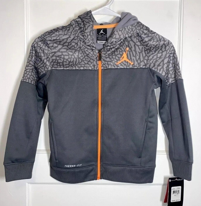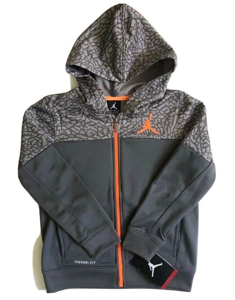 - Nike Air Jordan Boys Camo Therma-Fit Full Zip Hoodie Hooded Top Size 4 Dark Grey