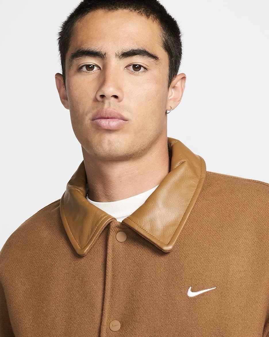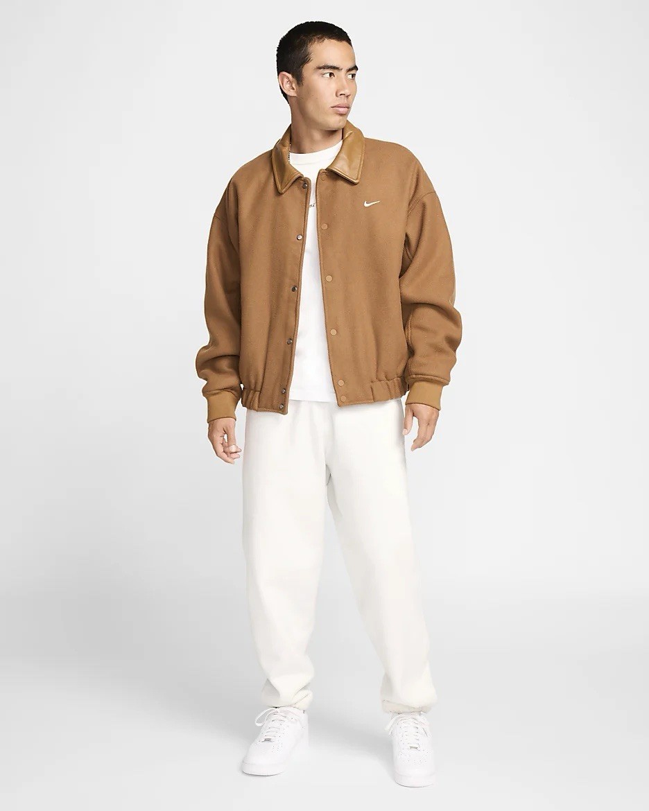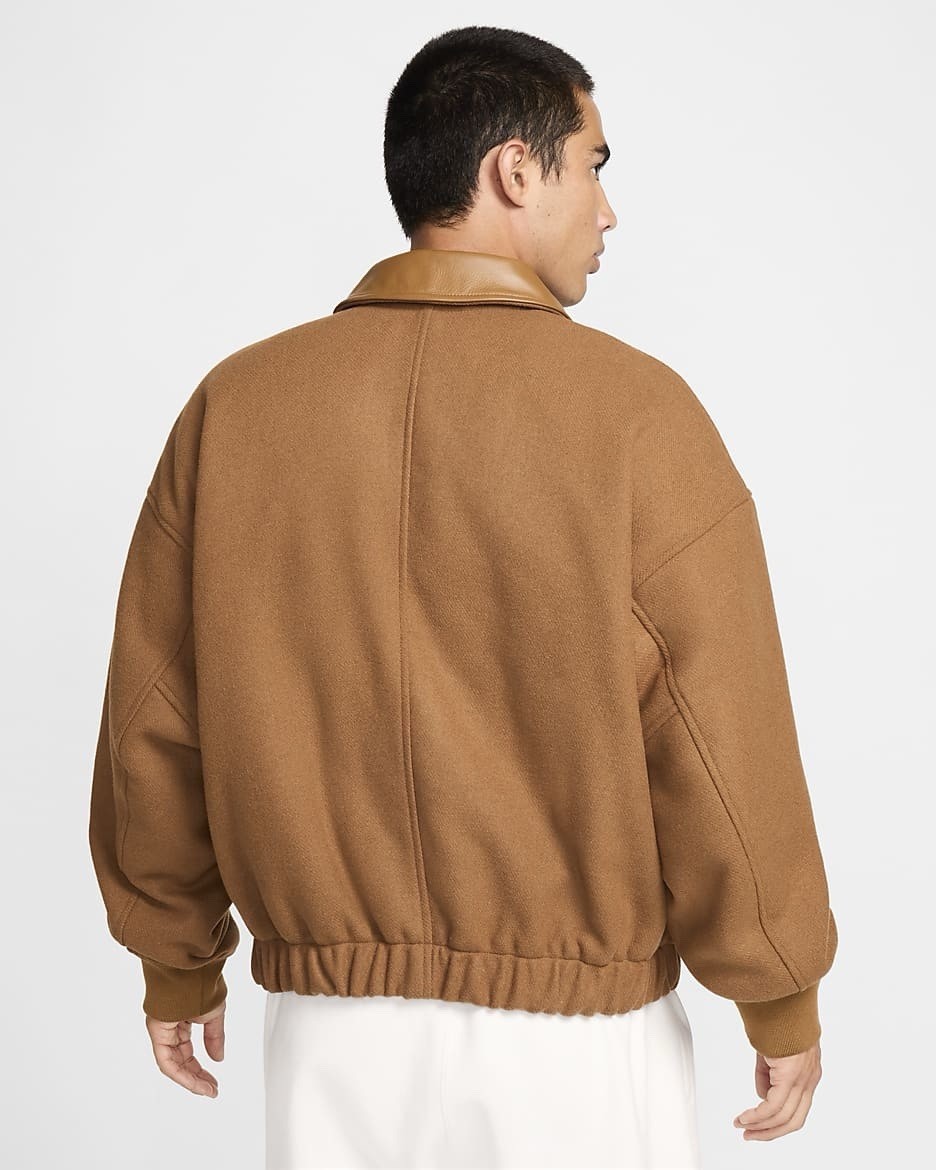 - Nike Air Varsity Jacket Wool Leather Tan Brown FZ1168-281 Men's Size L