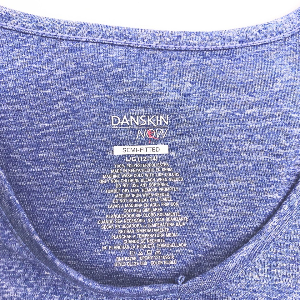 - Nike Danskin Now Semi-Fitted Womens Size Large 100% Polyester Blue Short Sleeve