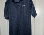 The Nike Dri Fit Victory All Over Print Golf Polo Shirt in Blue is a stylish and functional piece of men's golf clothing. Made by Nike, a trusted brand in athletic apparel, this polo shirt is specifically designed for golf performance. With a size M and a blue color, this shirt is sure to provide comfort and style on the golf course. The Dri-FIT technology ensures moisture-wicking performance, making it ideal for active movements during a round of golf.