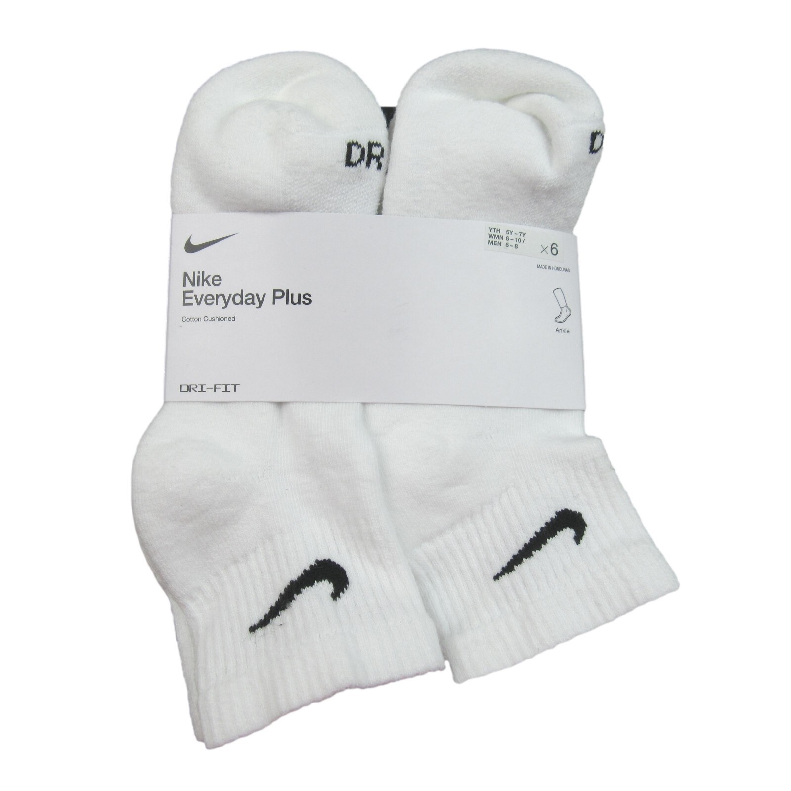 - Nike Everyday Plus Ankle Socks White (6 Pack) Womens 6-10 / Youth 5Y-7Y NEW