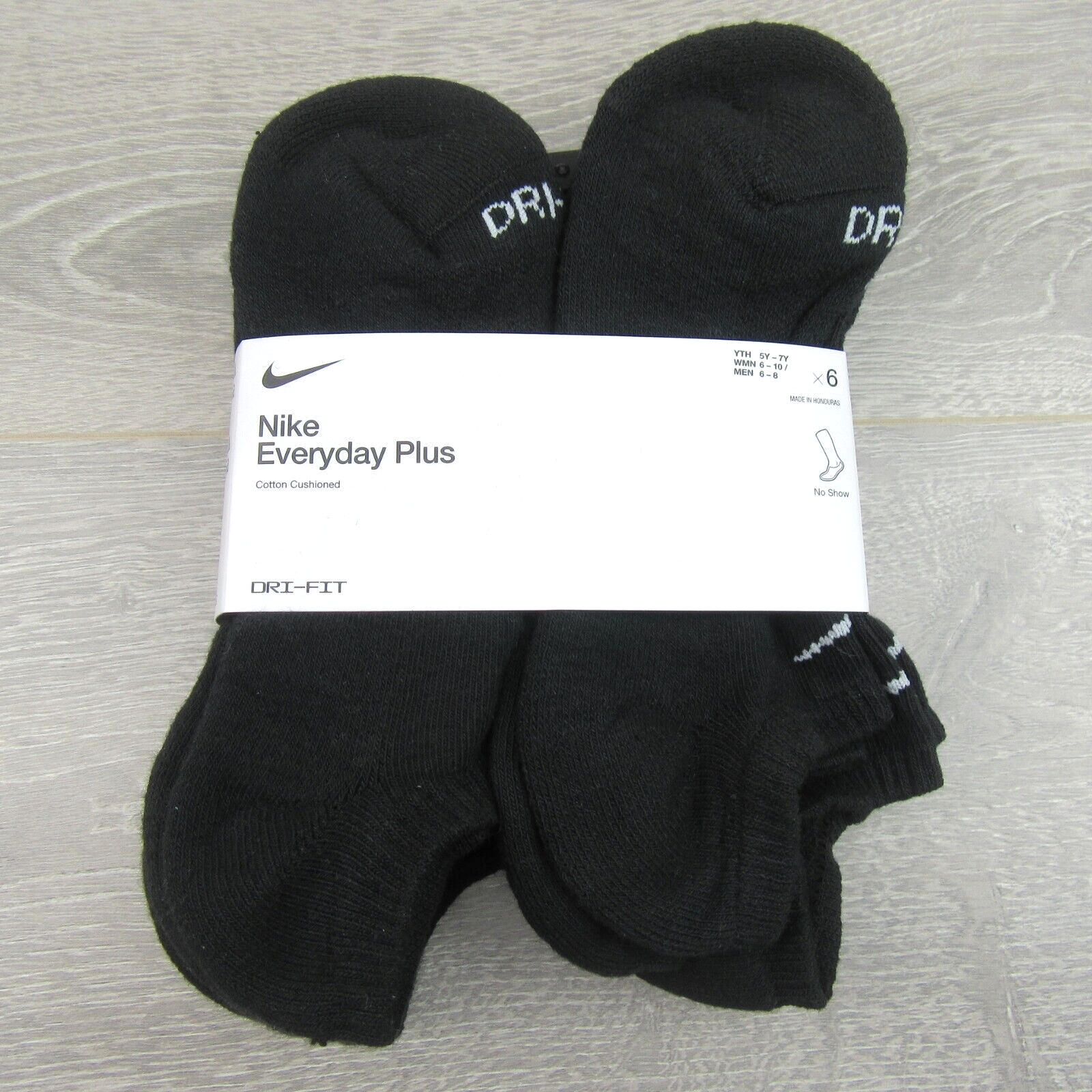 - Nike Everyday Plus No Show Socks Black 6 Pack Women's 6-10 / Youth 5Y-7Y NEW
