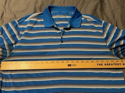 - Nike Golf Dri-Fit Tour Performance Polo Blue White Stripe XL Polyester