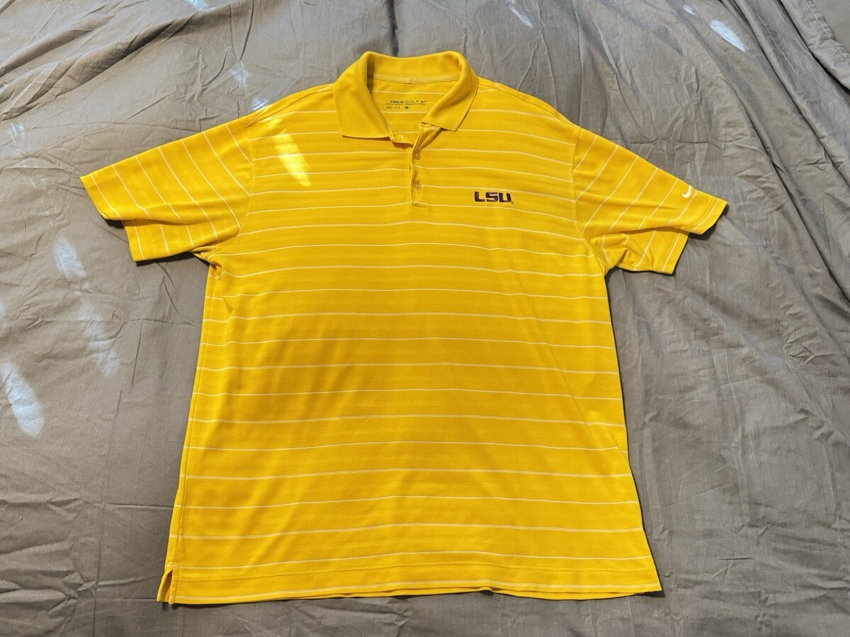- Nike Golf LSU Tigers Dri-Fit Polo Shirt Yellow Striped Men’s Large