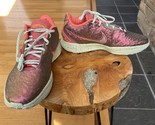 Nike men's sneakers featuring a unique textured design with a blend of dark and coral colors.