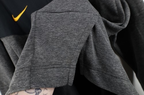 Dark spots on gray fabric. pilling. Cuffs discolored. Color faded. Issued to members of the athletic teams. No COA