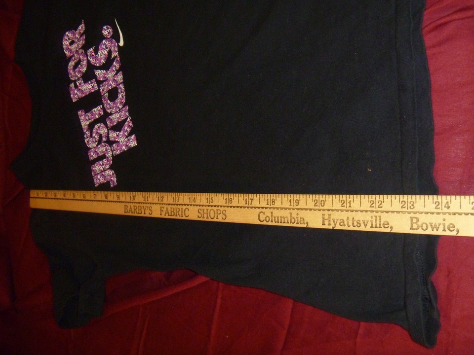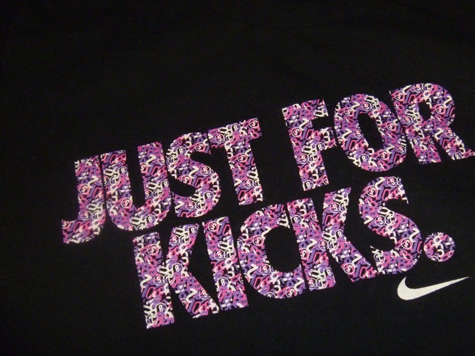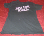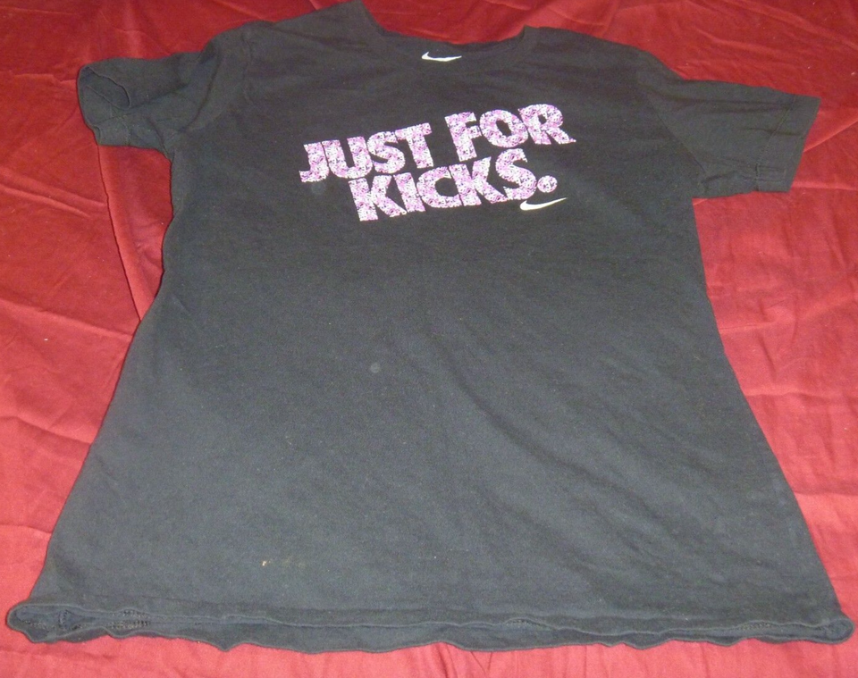 NIKE WOMEN'S SLIM FIT BLACK AND PURPLE JUST FOR KICKS SHORT SLEEVE T SHIRT L