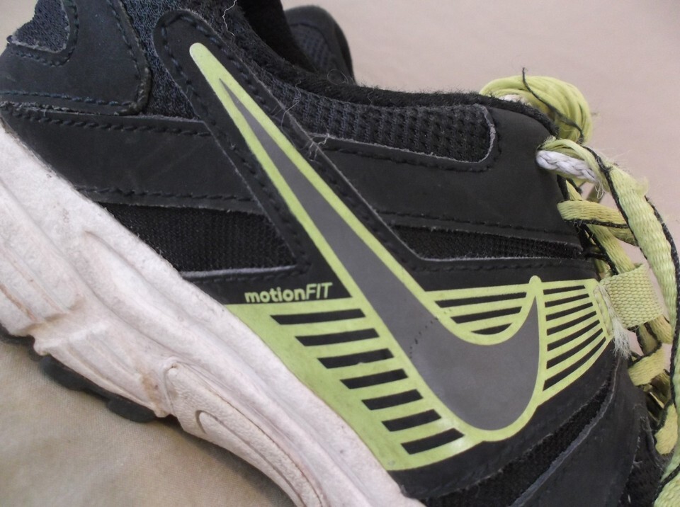 Nike Sneakers Kid's Youth 5Y Black White Green Yellow Laces Motion Fit 5643