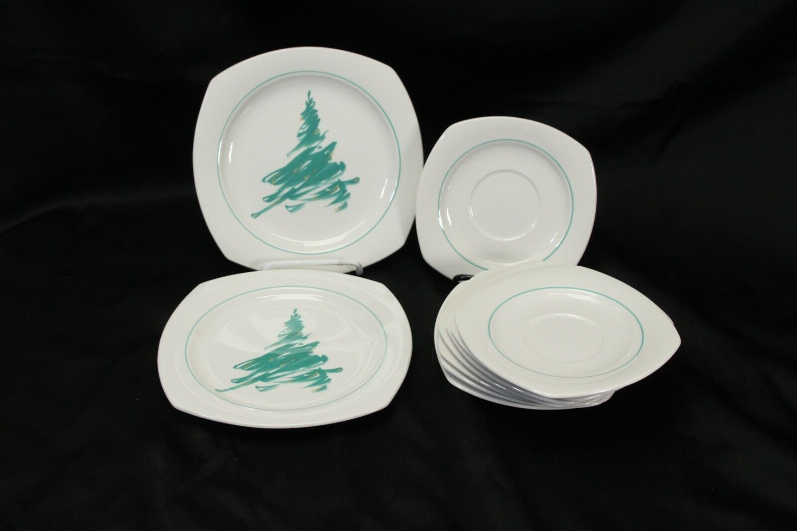 - Nikko Evergreen 8 Saucers and 2 Salad Plates Christmas Tree Lot of 10 Xmas