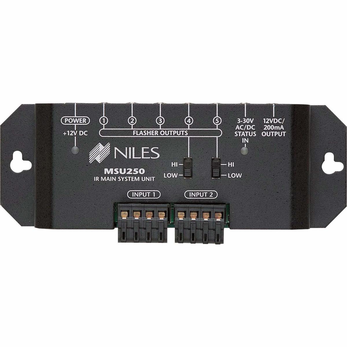 Product description: two IR sensor inputs * five IR flasher outputs -- three full power, two variable power * 12-volt status input jack * 12-volt output can be triggered by a command from a learning remote * UL-listed, regulated in-line power supply with universal voltage capability * system feedback LED provides visual indication of operation * integrated mounting wings accommodate both vertical and horizontal installation * rugged all-metal chassis * 5-5/8"W x 2"H x 7/8"D * warranty: 2 years