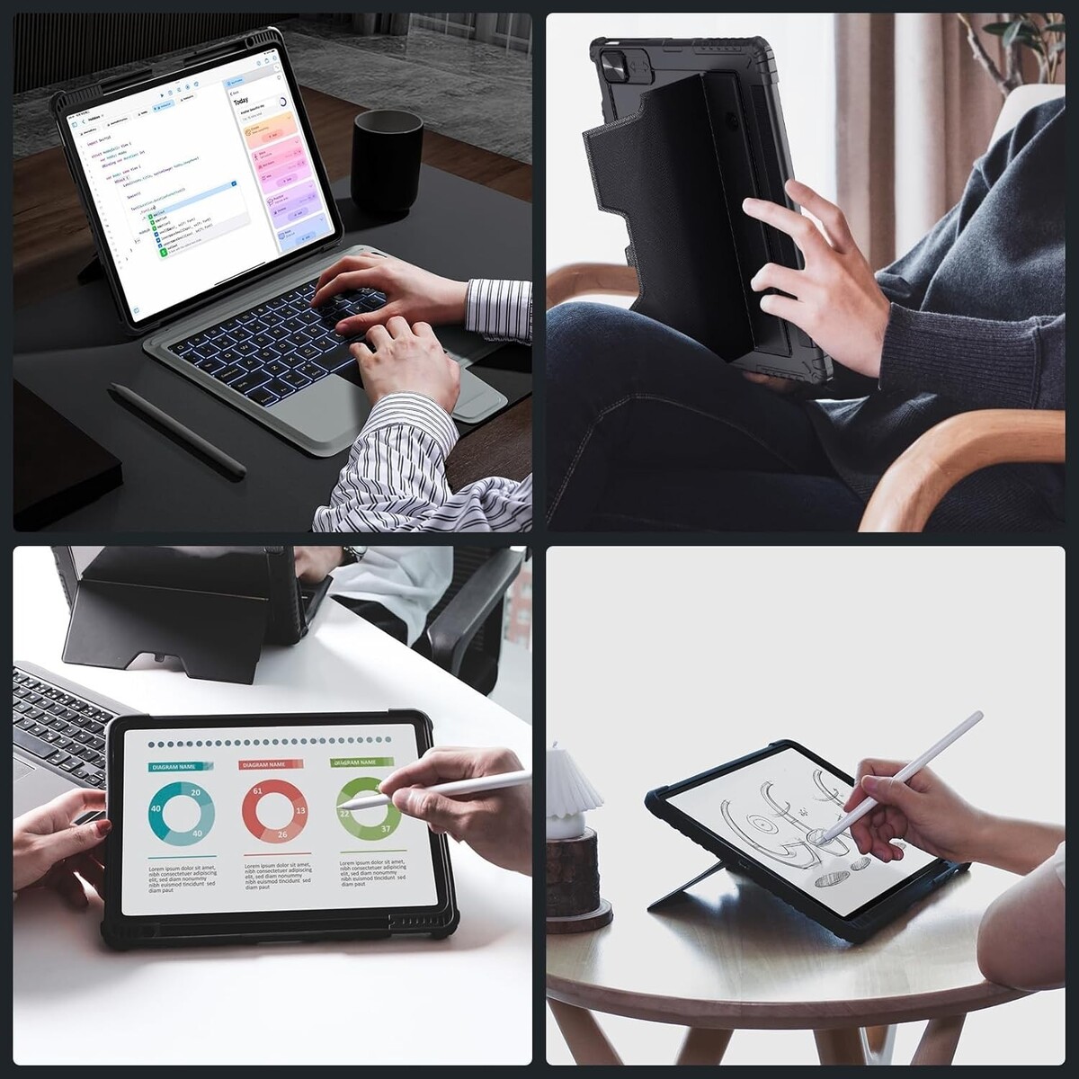 ?Magical Trackpad?The sensitive trackpad allows for precise taps, supports all iPadOS Multi-Touch gestures such as scroll, zoom and drag. Multitask, edit, and browse without touching the screen, significantly improving efficiency. With palm rejection technology, your typing won't be interrupted.