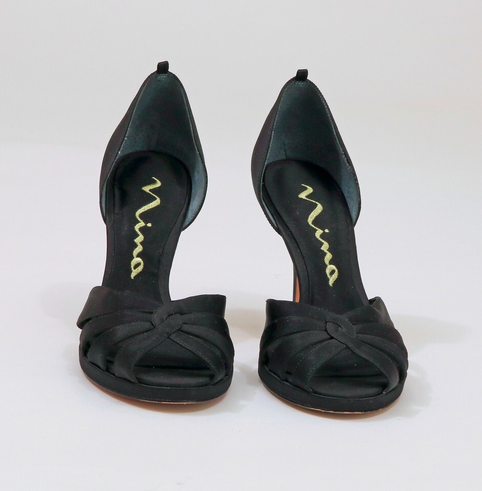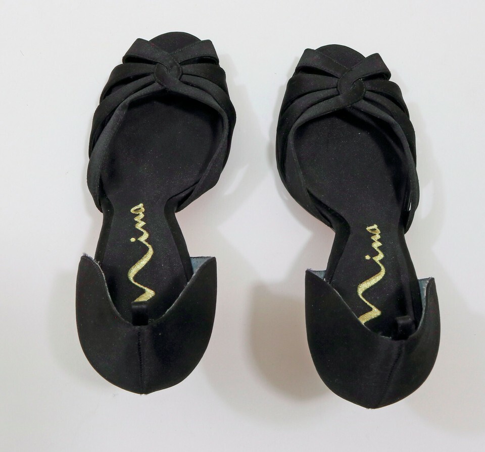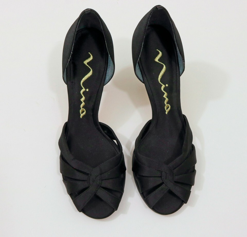 Beautiful black dressy heels by Nina in excellent used, preowned, condition. The outer soles are leather and show some minimal wear. Perfect shoes for a special occasion.