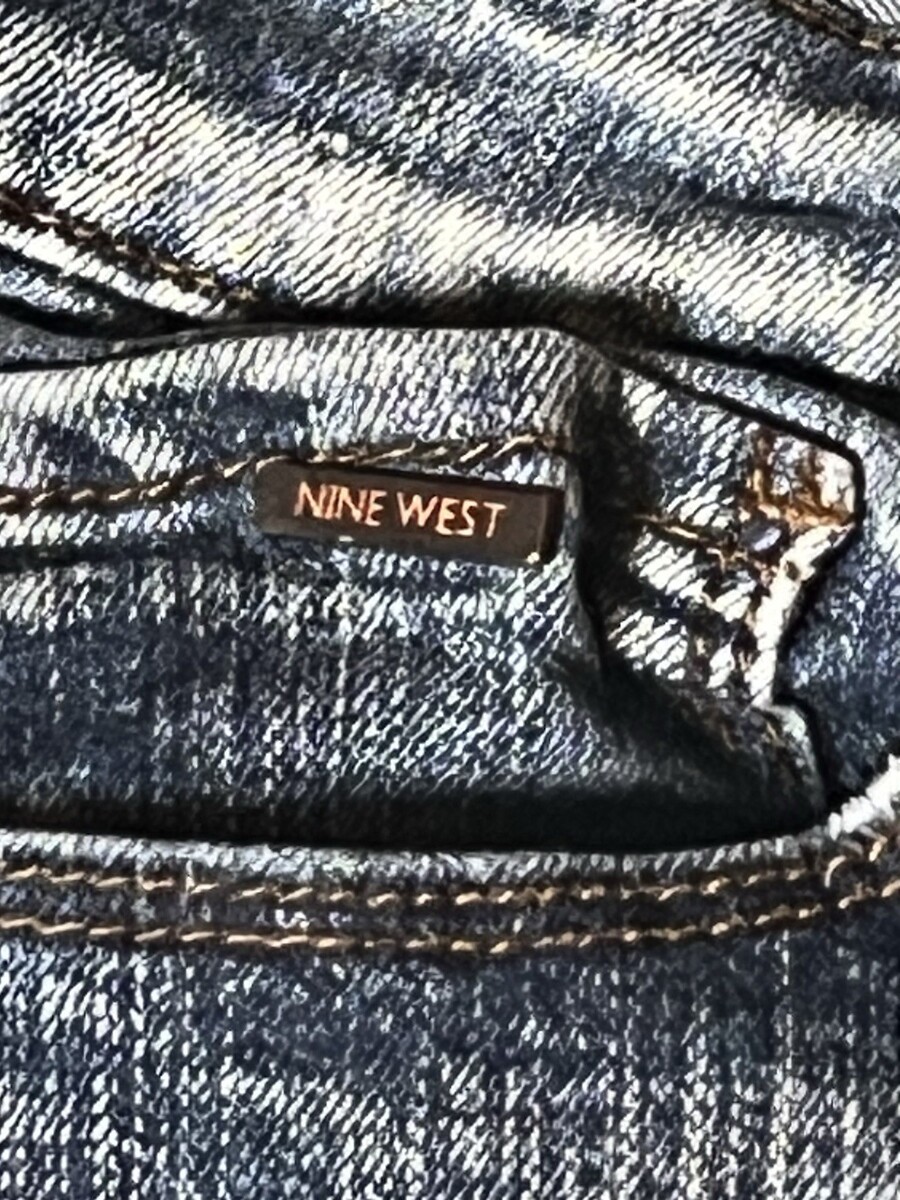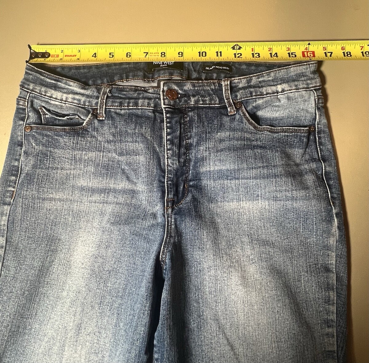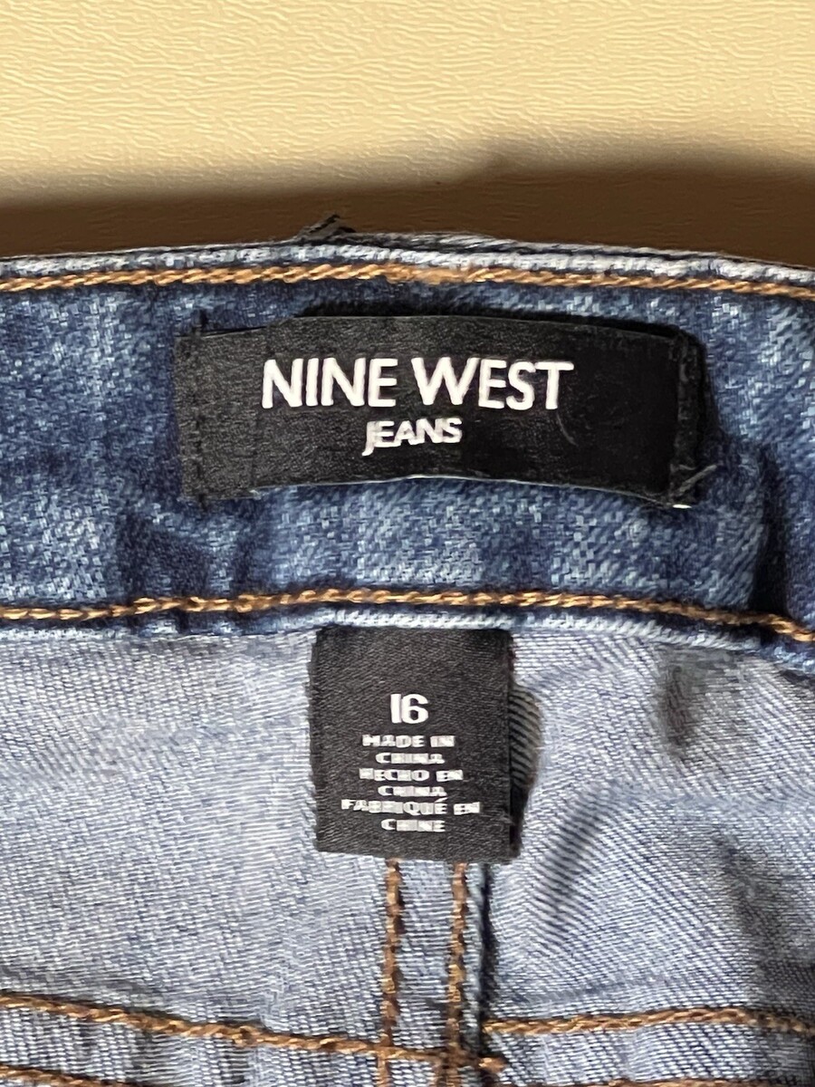 The product is a pair of Nine West Women's Jeans in size 16 and blue color. They feature a micro boot style, which adds a trendy and stylish element to the classic jeans. These jeans are designed for a regular fit and are perfect for women looking for a fashionable and comfortable option in their wardrobe.