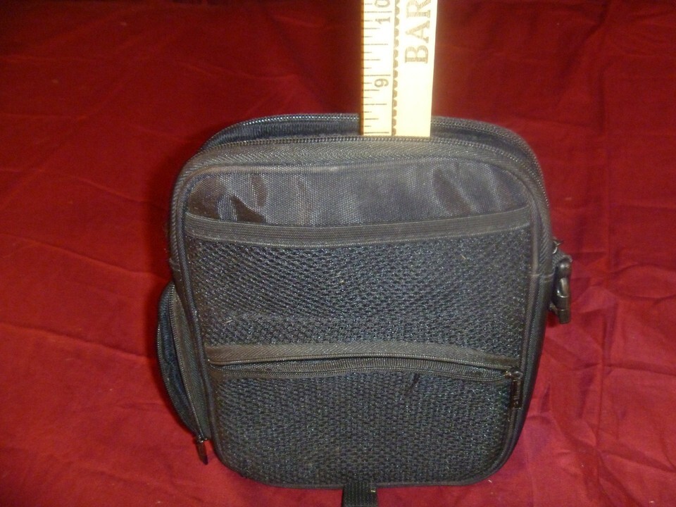Nintendo DS Embroidered Black Super Mario Carrying Case Storage Bag. There are signs of wear throughout this bag. The shoulder strap is missing, but it has plenty of life left!
