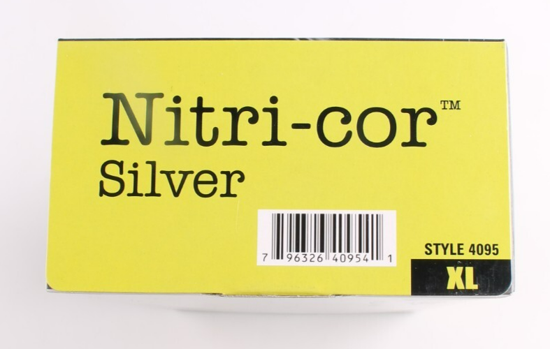 Nitri-Cor Silber Nitril Handschuhe Industrielle Puderfrei Texturiert XL 4 Mil