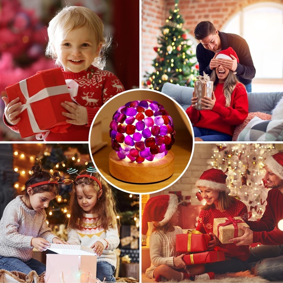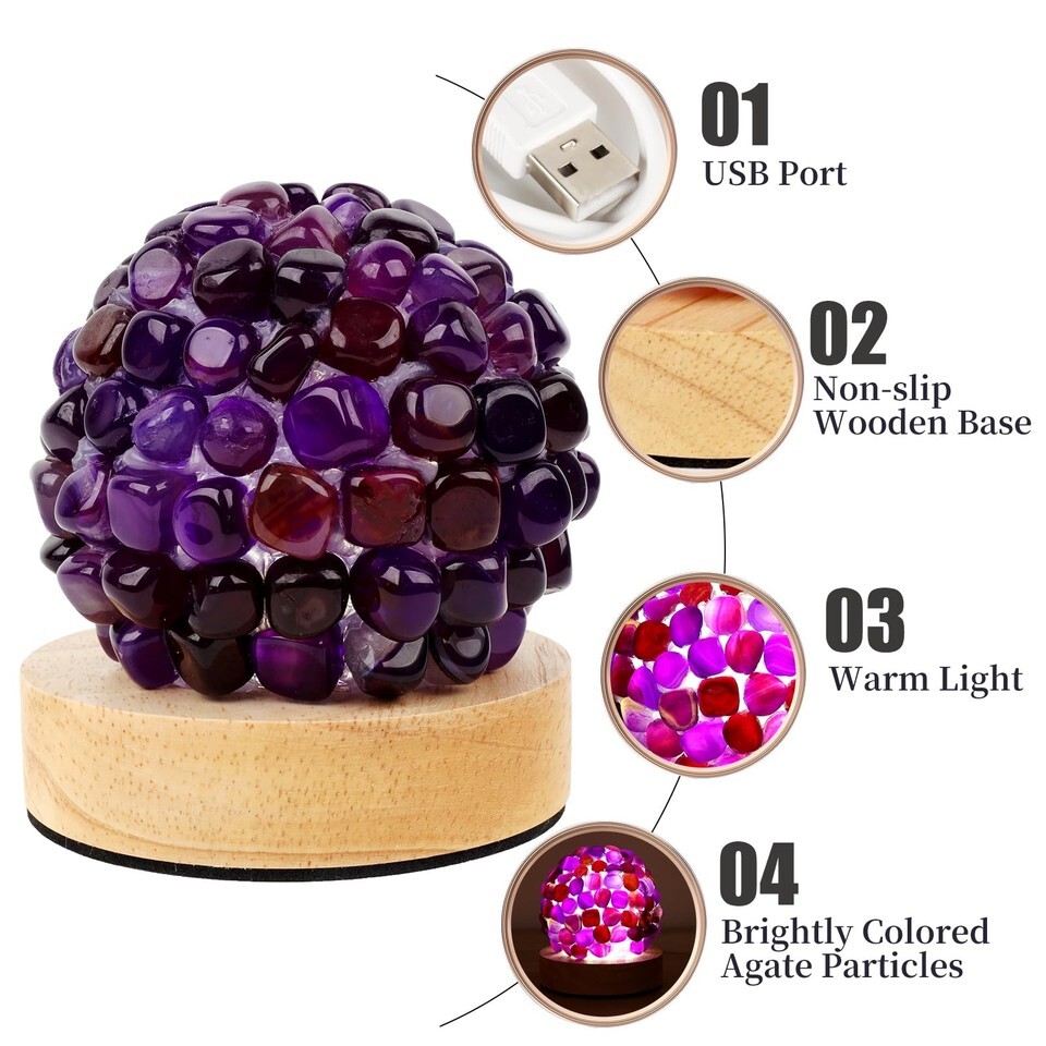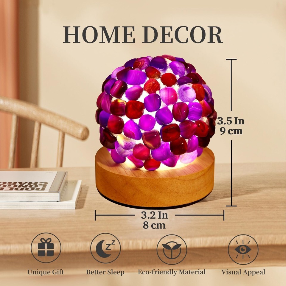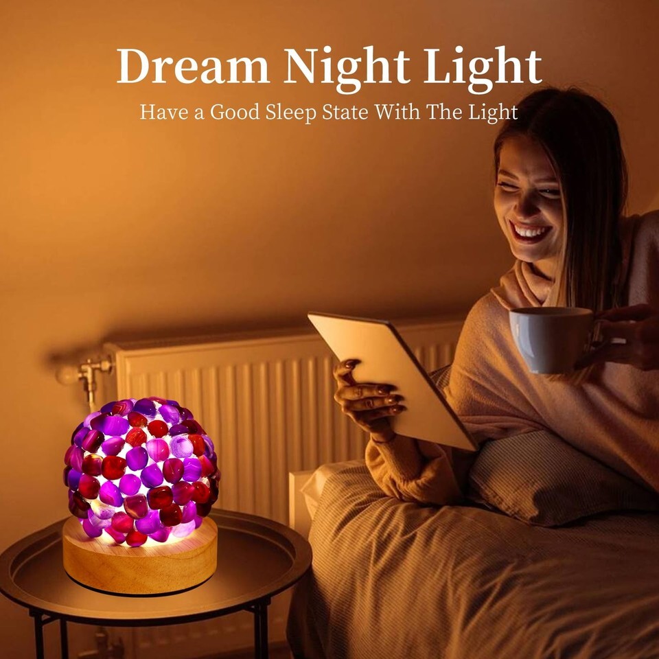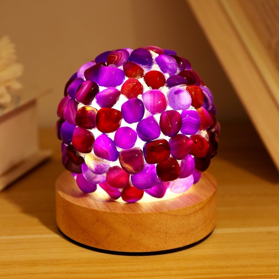 Healing Crystal Night Light Nizrsky crystal light with wooden base radiates soft and charming light and makes people feel calm and warm. The Agate stone also can purify the mind, release stress and remove the negative energy in the human body, so it is also used as a healing lamp, great for Wicca reiki energy healing, meditation lamp, yoga balance and etc.
