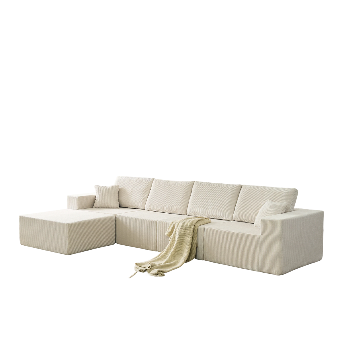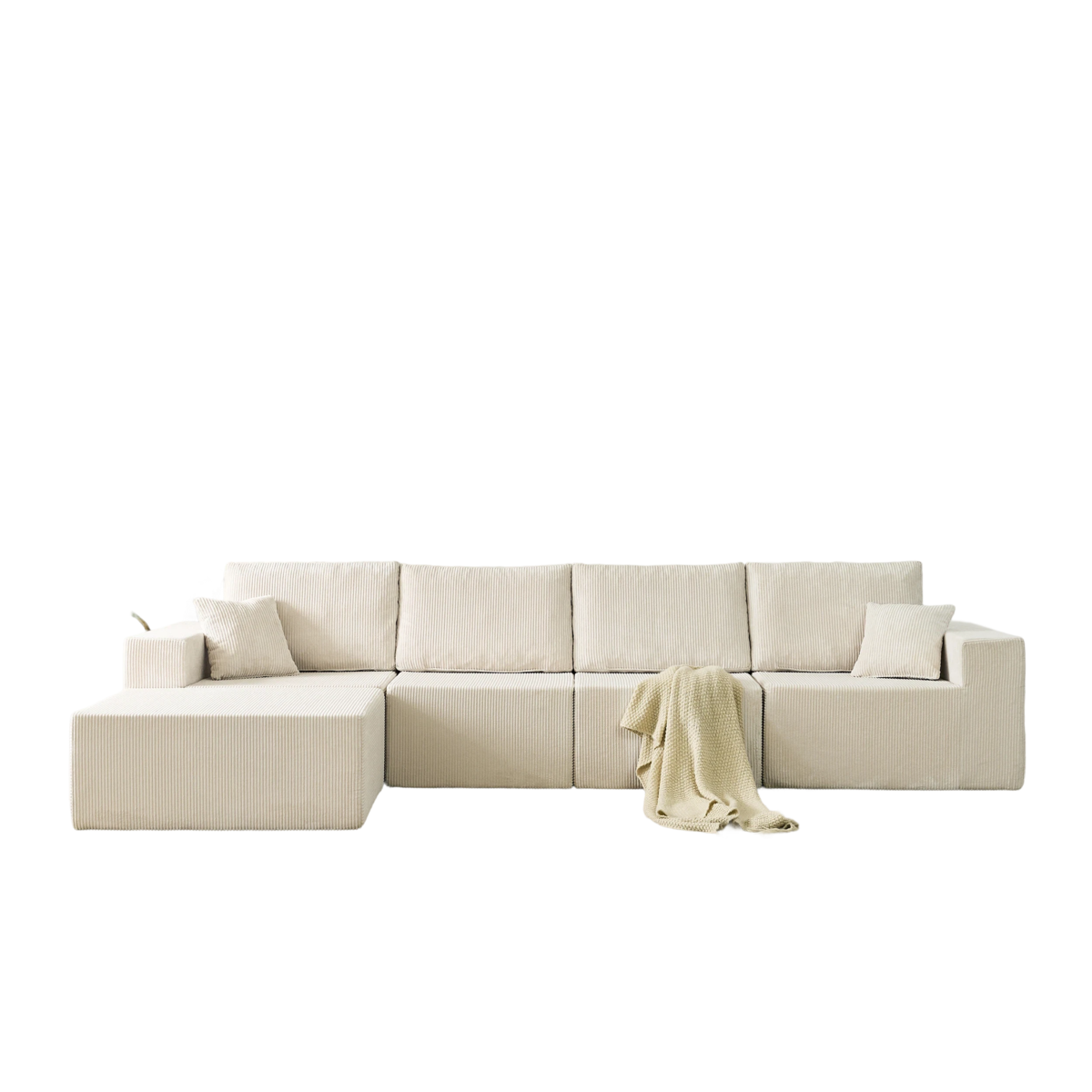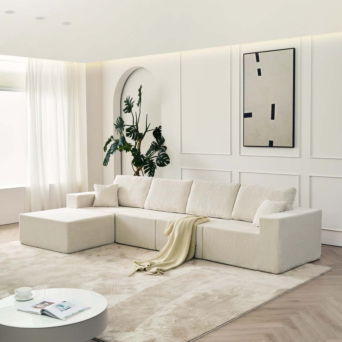 Luxury Corduroy Fabric: Indulge in our luxurious plush corduroy fabric, which is as soft as silk under your fingertips. The upgraded wrinkle-resistant corduroy fabric adds both warmth and sophistication to any room, while its durable, high-quality material ensures long-lasting comfort for every season. The 4-Seater Sectional Sofa features this premium corduroy fabric, which is not only beautiful but also easy to clean, elevating your living space with elegance and warmth.