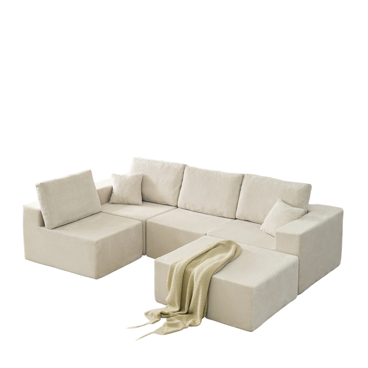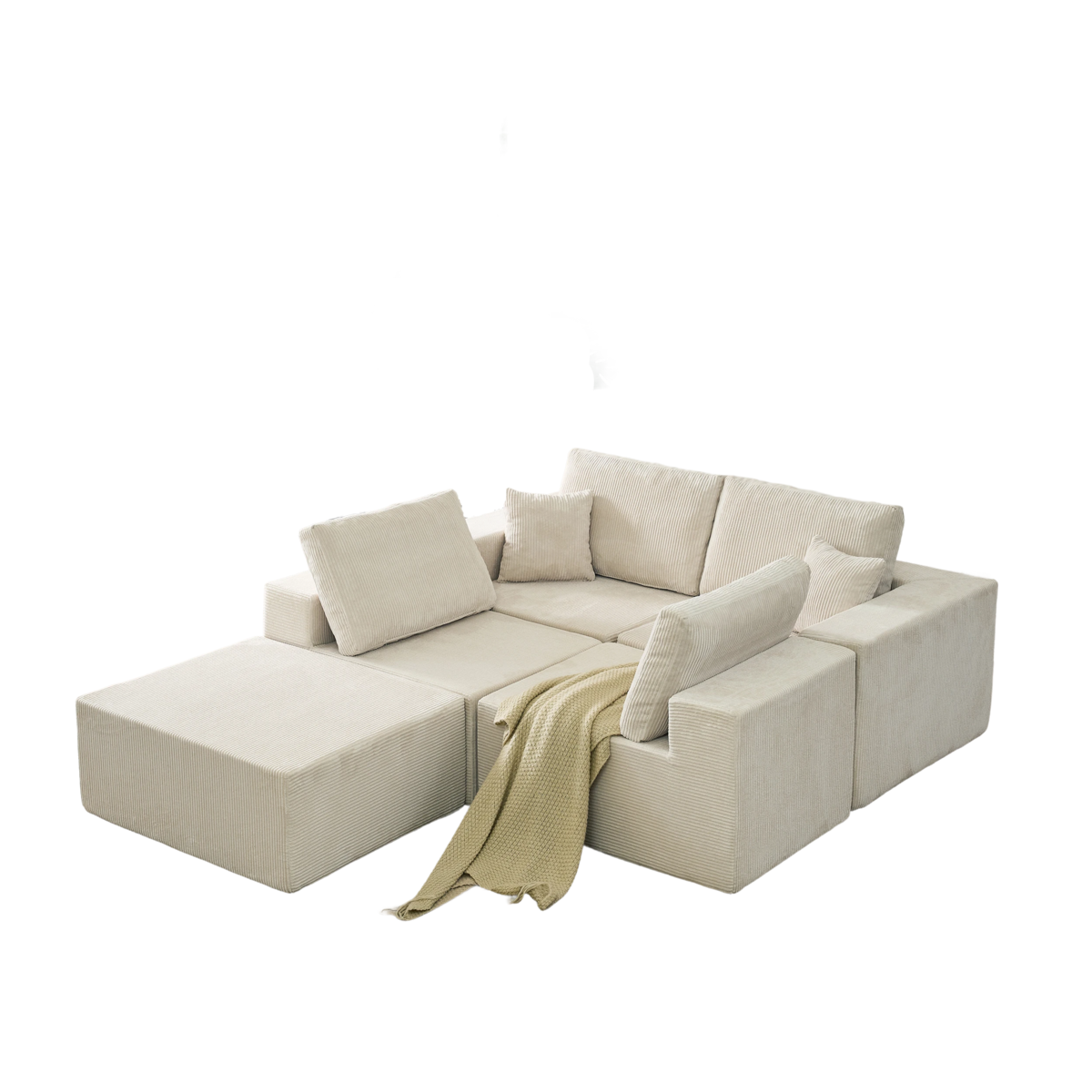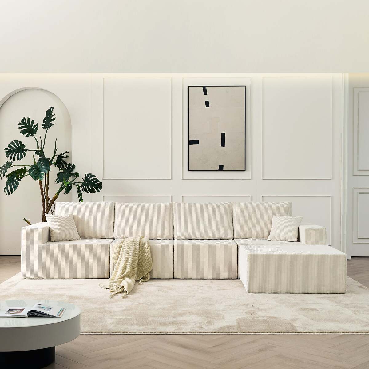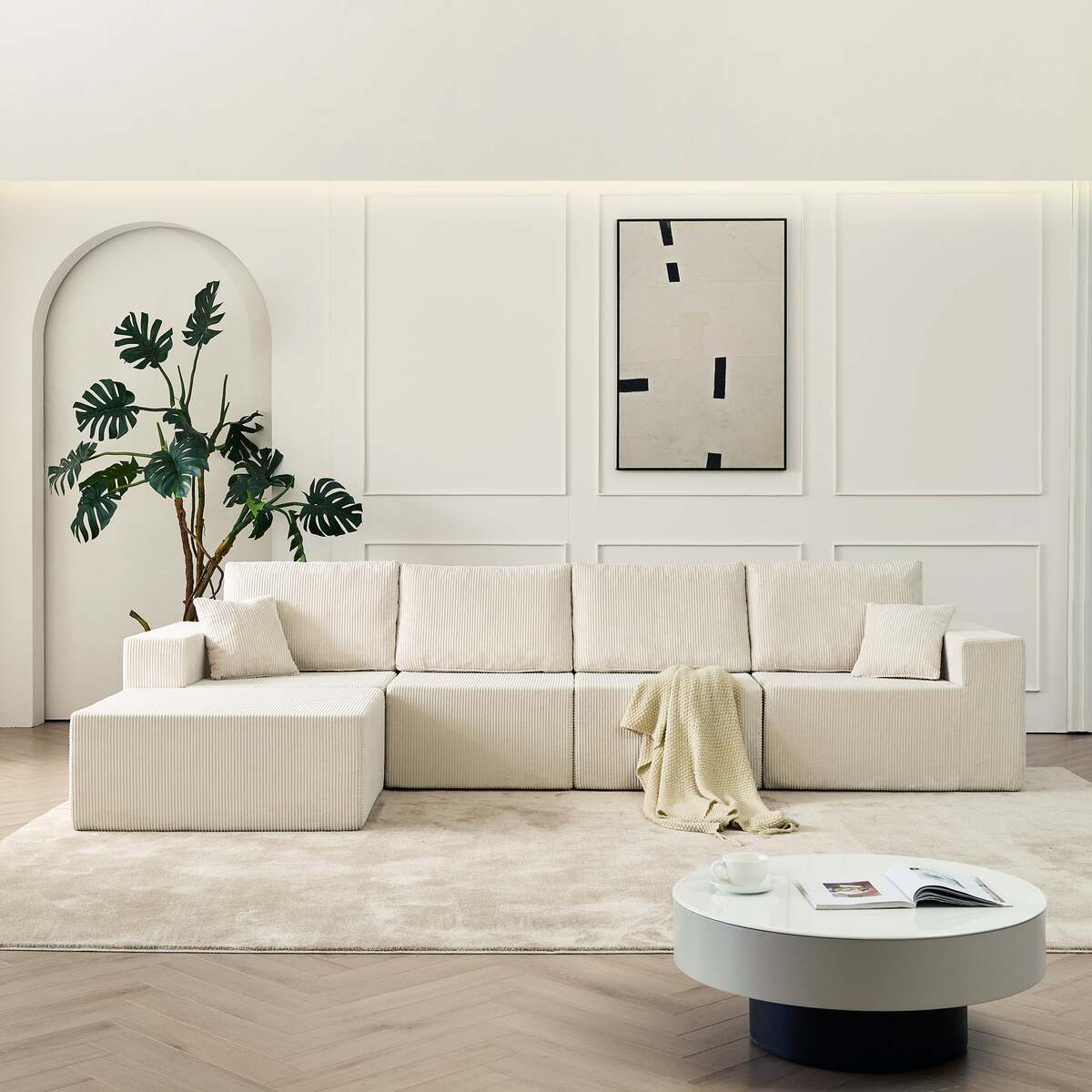 Luxury Corduroy Fabric: Indulge in our luxurious plush corduroy fabric, which is as soft as silk under your fingertips. The upgraded wrinkle-resistant corduroy fabric adds both warmth and sophistication to any room, while its durable, high-quality material ensures long-lasting comfort for every season. The 4-Seater Sectional Sofa features this premium corduroy fabric, which is not only beautiful but also easy to clean, elevating your living space with elegance and warmth.
