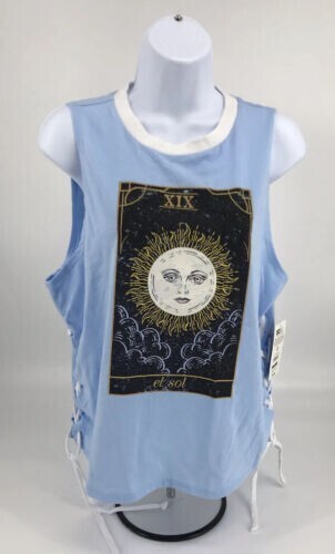 No Boundaries Graphic Junior Tank top Size XXXL (21) Blue Sun lace Up sides