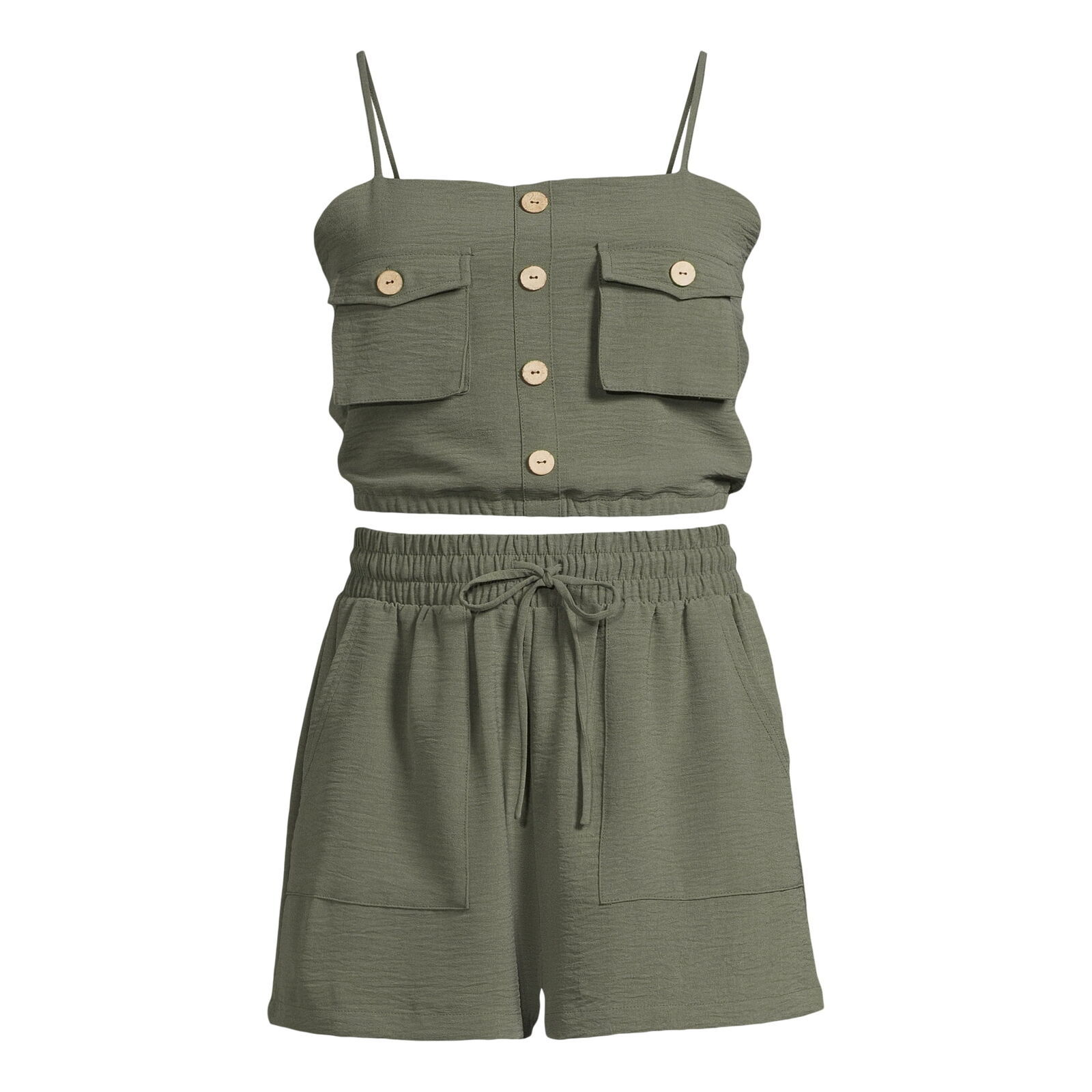 No Boundaries Juniors Cargo Short Set Green Midnight Size M (7-9)