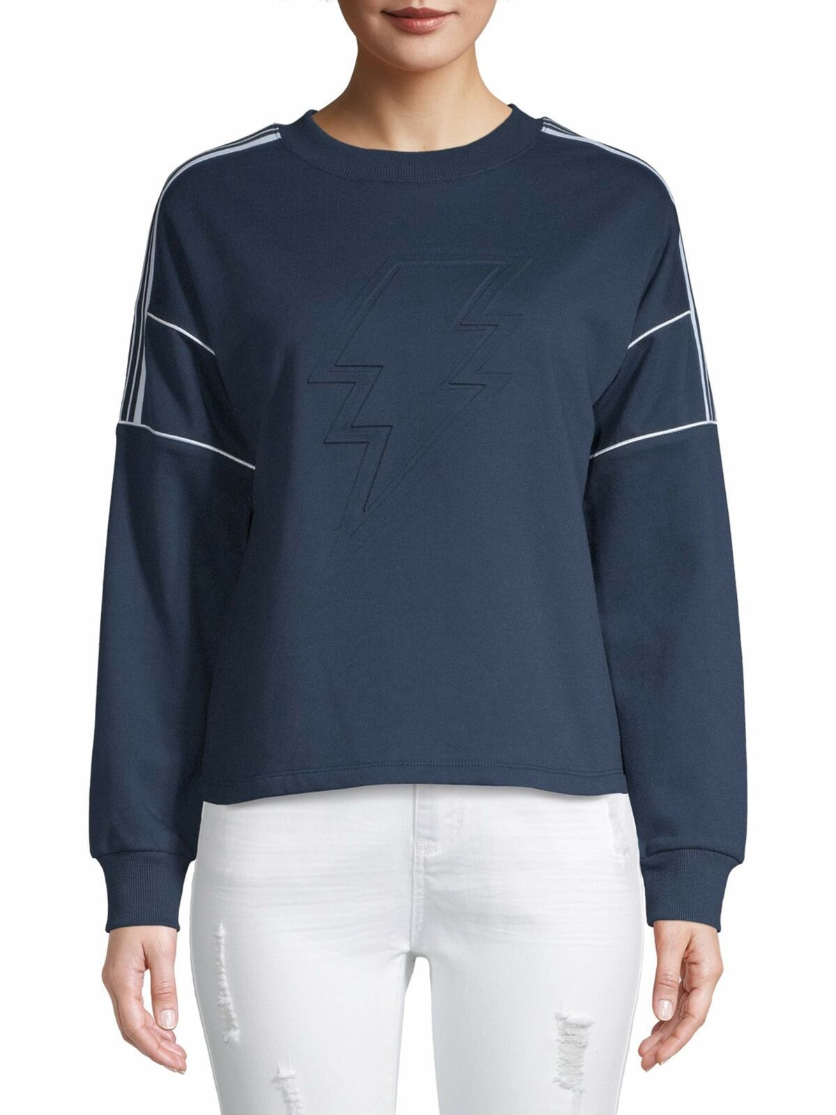 - No Boundaries Juniors' Graphic Crewneck Sweatshirt Size XL/XG 15-17 Blue Flash