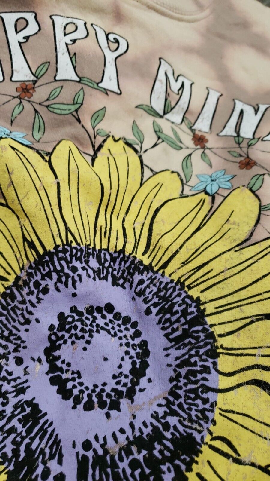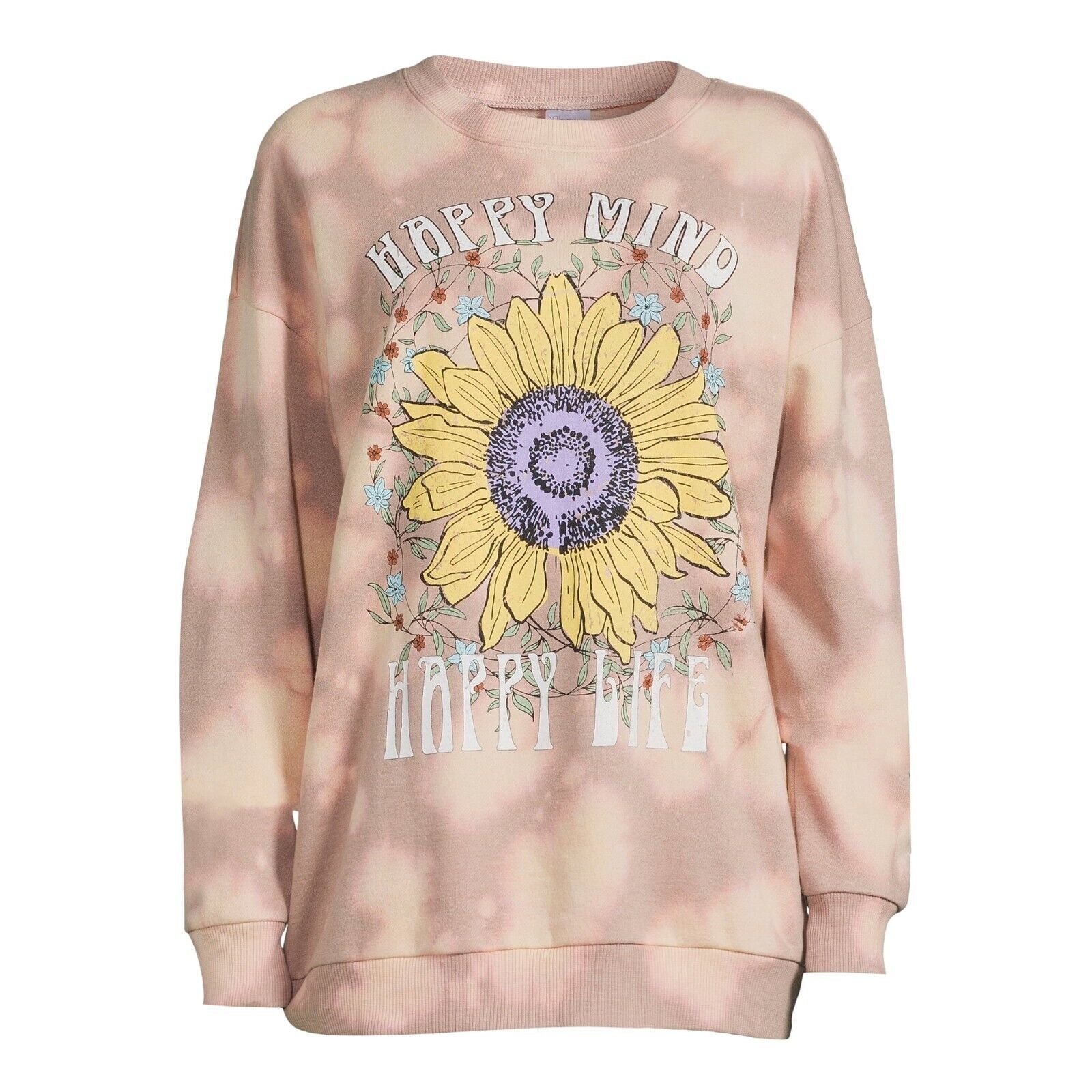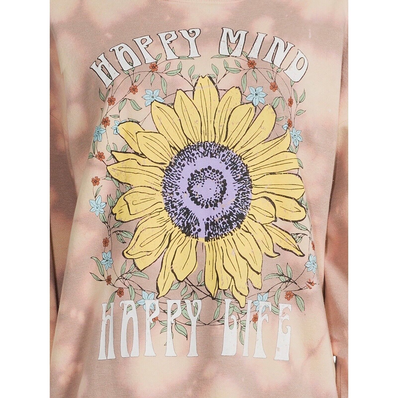 - No Boundaries Juniors 'Happy Mind' Pullover Graphic Print Sweatshirt Mocha Sz XS