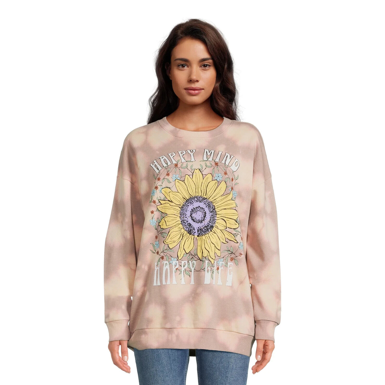 Perfect for those chilly days when you want to stay comfy but still look cute? Meet our cozy and stylish women's graphic pullover sweatshirt from No Boundaries. Crafted from a soft and breathable cotton blend, this sweatshirt features a trendy and eye-catching graphic design on the front, adding a touch of personality to any outfit. The relaxed fit and ribbed cuffs and hem make this sweatshirt ultra-comfortable and easy to wear, whether you're running errands or lounging at home.