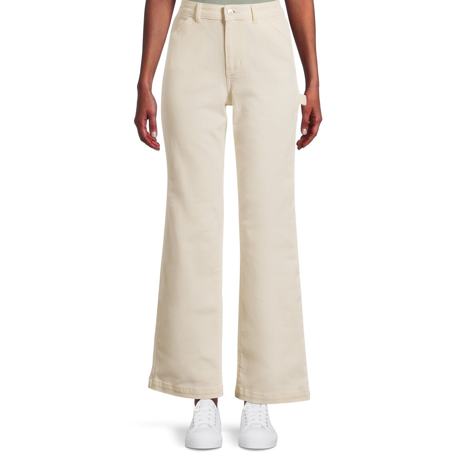 - No Boundaries Juniors High Rise Carpenter Jeans, 32" Inseam, Cream Size 1