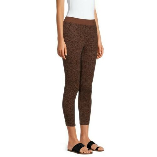 No Boundaries Juniors' Mid Rise Rib Waistband Jeggings Animal Print Brown S/CH