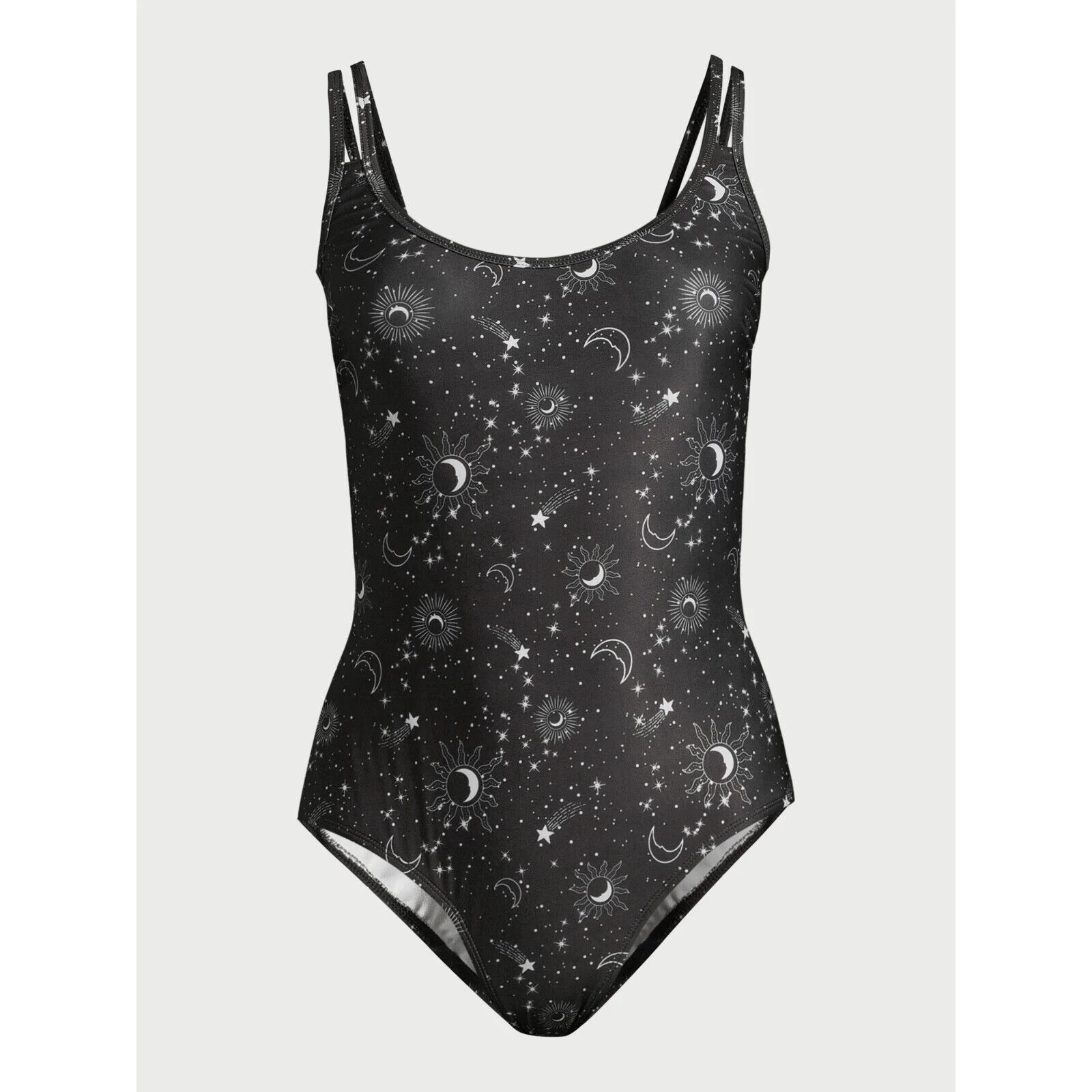 - No Boundaries Juniors’ Multi-Strap One-Piece Swimsuit, Black/White Size S(3-5)
