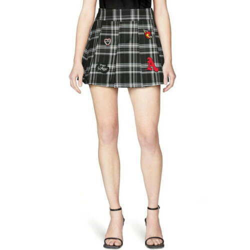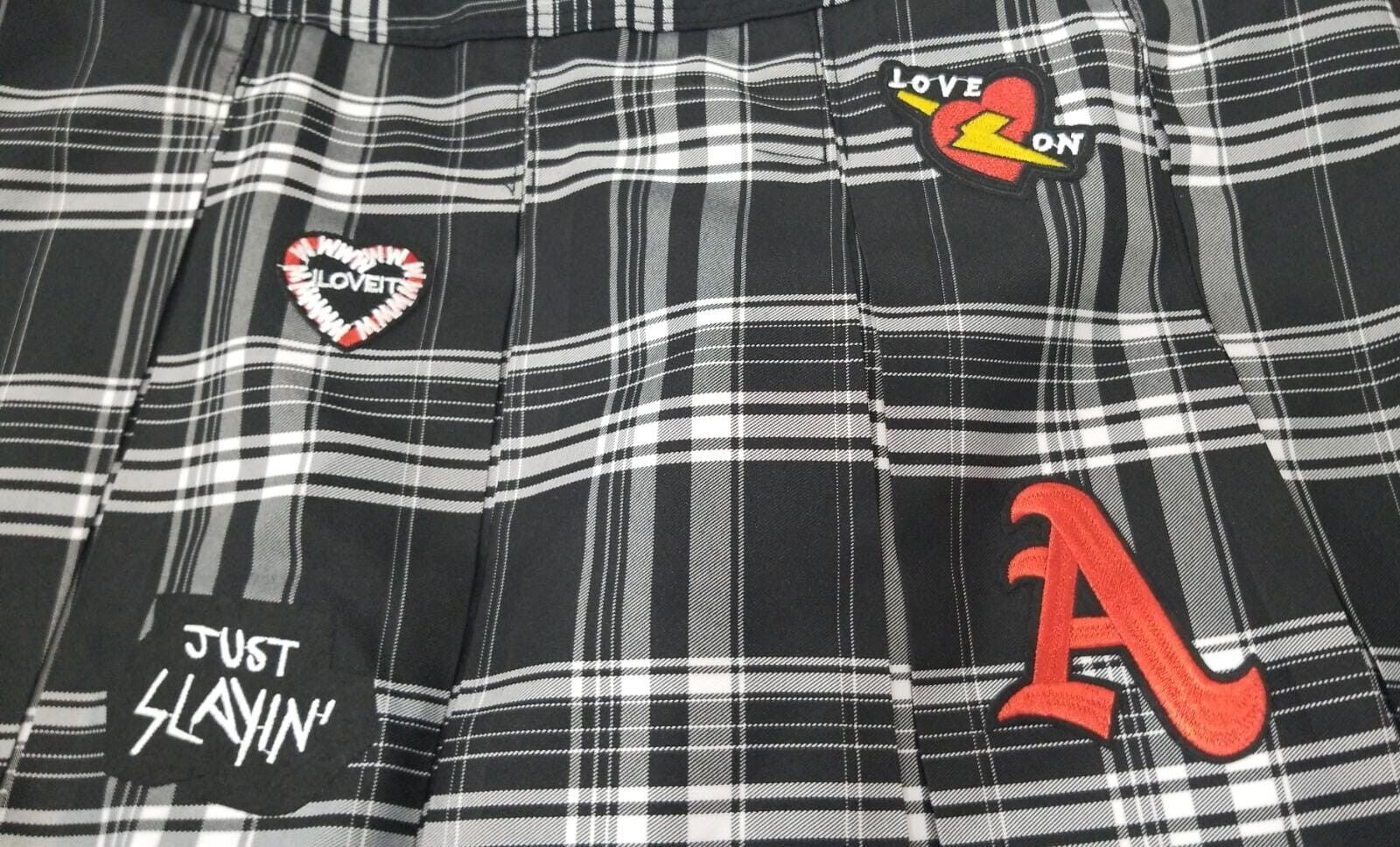 - No Boundaries Juniors Plaids Tennis Mini Length Skirt Patches Black Sz XL (15-17