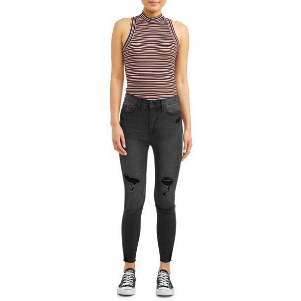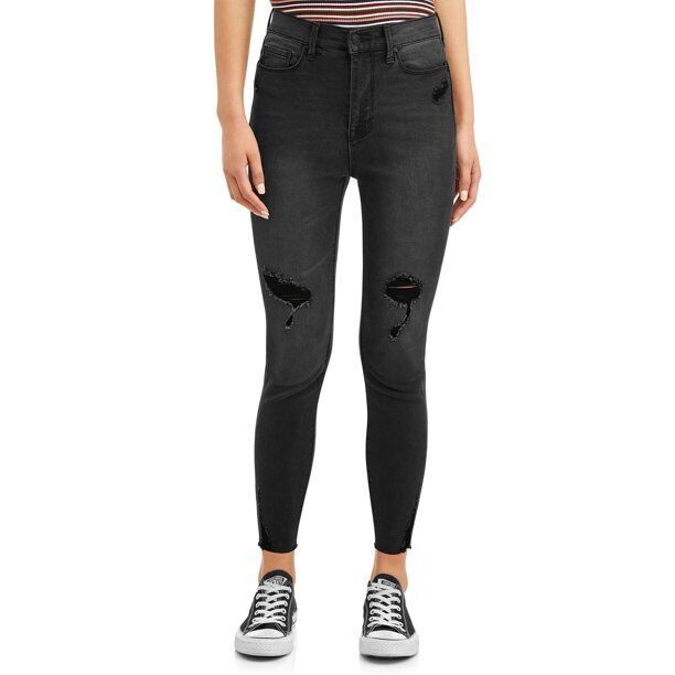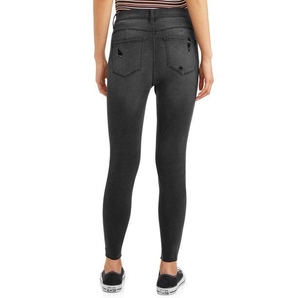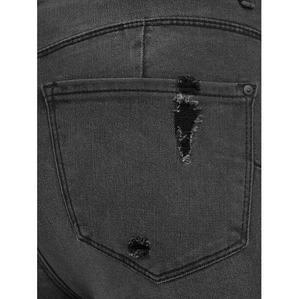 - No Boundaries Juniors' Sculpt Destructed Skinny Jeans, Dark Grey Size 5