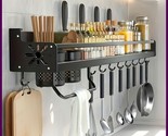 Upgrade your kitchen storage with this sleek metal hanging spice rack, designed to save space and keep your cooking essentials within easy reach. With a no-drill installation, this multi-purpose kitchen organizer features hooks for utensils and space for spice jars, knives, or chopsticks?perfect for modern homes, rentals, or anyone who loves a tidy kitchen.